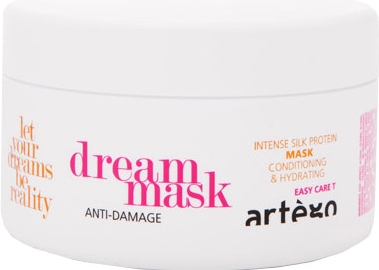 Artégo Dream Mask Anti-Damage je rekonstrukční maska pro všechny tipy poškozených, vysušených a krepatých vlasů. Viditelně zlepší jejich vzhled. Maska opraví vnitřní konstrukci vlasu. Regenerační maska Artégo Dream díky kombinovanému působení esenciálních olejů a sericinu regeneruje a vyhlazuje vnější strukturu vlasu a chrání ji, zároveň vlasy hydratuje.