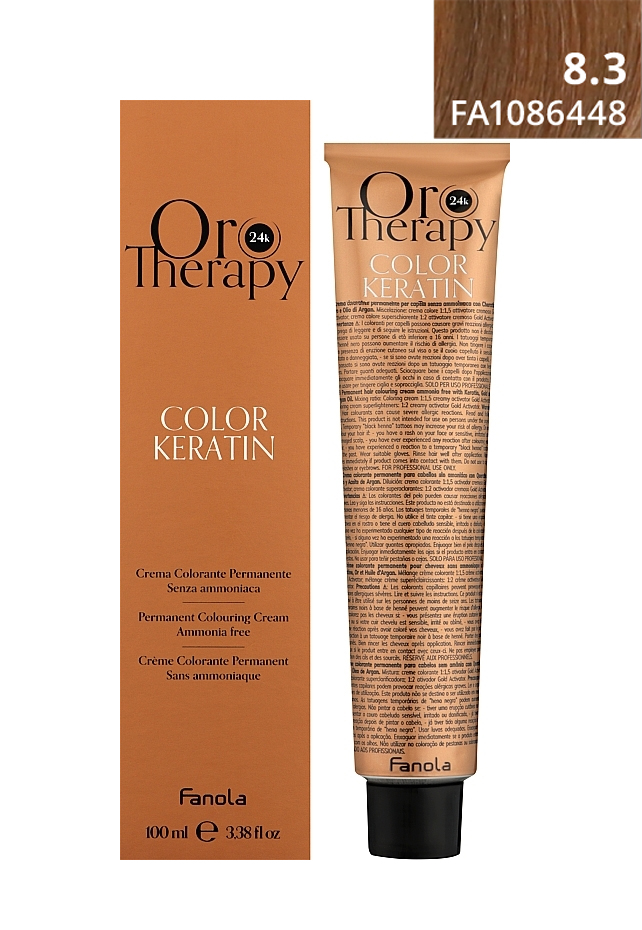 Profesionální permanetní krémová barva bez amoniaku zaručuje maximální krytí bílých-šedivých vlasů (100% krytí šedin u základních odstínů) a zanechává vlasy brilantní, jemné, hydratované a chráněné. Obsahuje mikročástice 24 K ZLATA pro lesk s anti-age efektem proti stárnutí, KERATIN, který dodává vlasové struktuře plnost a vitalitu, regeneruje narušené, matné vlasy a ARGANOVÝ OLEJ – chrání, rozjasňuje, posiluje a vyživuje vlasy, je bohatý na vitamín E, a síla přírodních antioxidantů působí proti stárnutí.