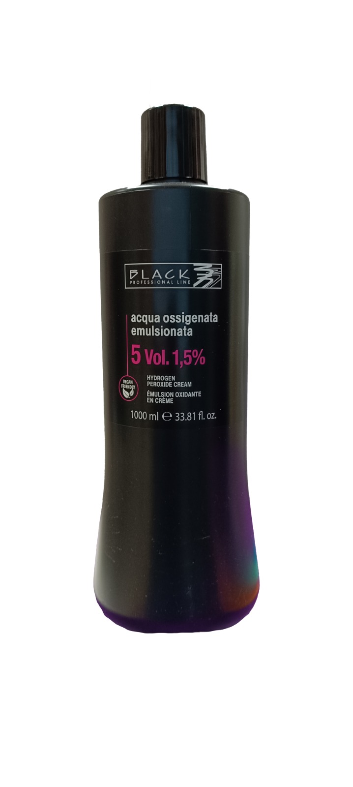 Peroxid vodíku v emulzi od značky Black. Krémová konzistence tohoto výrobku zaručuje snazší použití, zabraňuje problémům se stékáním a je k vlasům šetrnější.