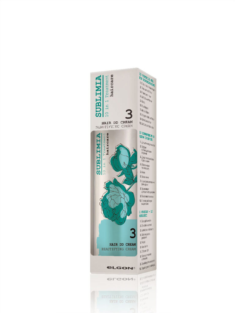 Elgon Sublimia DD Cream 10in1 je multifunkční bezoplachový krém obohacený o řadu aktivních látek, které poskytují 10 benefitů. Zklidňuje vlasy, působí proti stárnutí, usnadňuje úpravu, chrání před teplem, dodává lesk a hydrataci, chrání před UV zářením, usnadňuje rozčesávání a chrání barvu před vyblednutím.