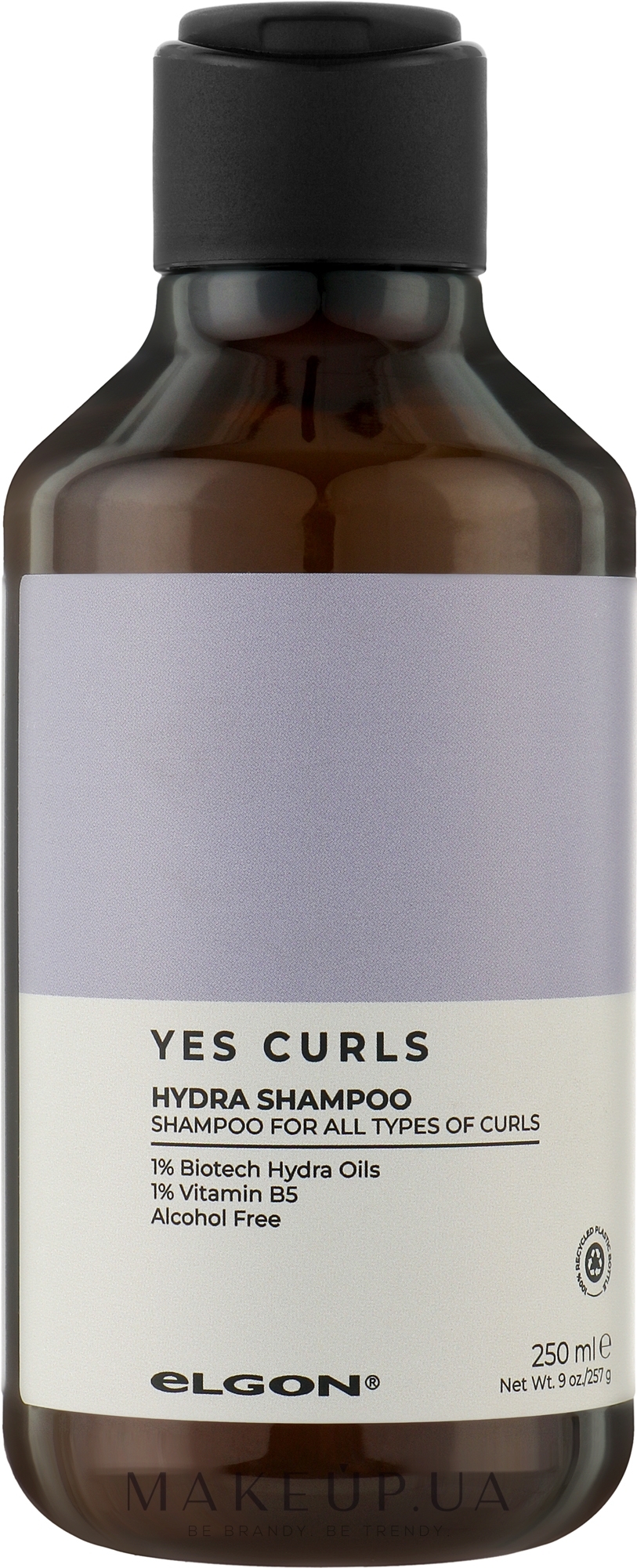 Elgon Yes Curls Hydra Shampoo je hydratační šampon pro kudrnaté vlasy. Jemně čistí kudrnaté nebo vlnité vlasy tím, že jim dodává vlhkost a dělá je extrémně jemné a pružné. Jeho složení je obohaceno o biotechnologickou aktivní složku Hydra Oil, která poskytuje +53% pružnost, díky čemuž jsou vlasy extrémně hedvábné a lesklé, a vitamín B5 pro zářivé, plné a zdravě vypadající vlasy.