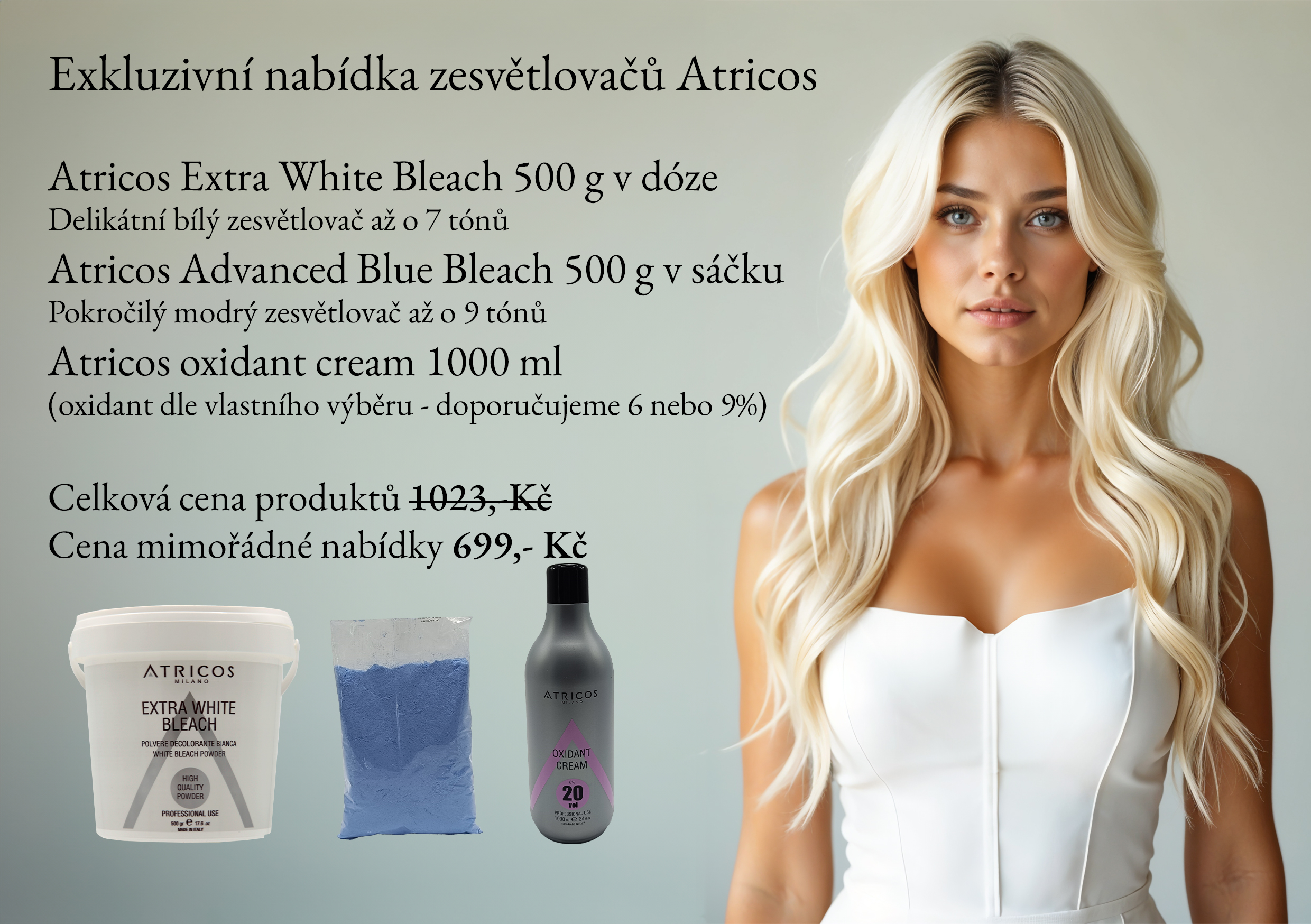 Emulgovaný peroxid vodíku s neinvazivní oxidační vlastností. Tekutá a krémová konzistence. Nezbytný pro přípravu barev a zesvětlujících produktů Atricos.