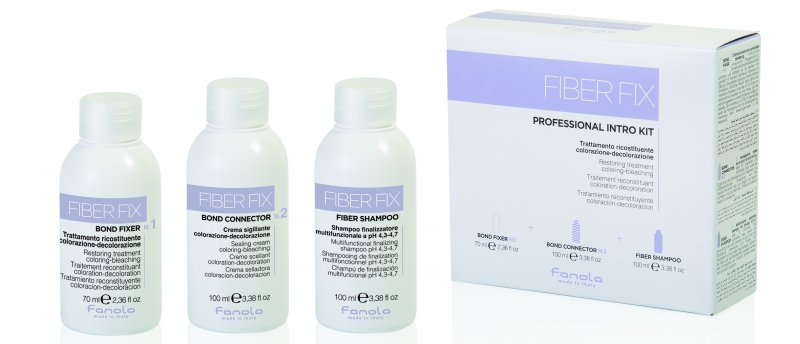 Fanola Fiber Fix sada obsahuje: Bond Fixer 70 ml + Bond Connector 100 ml + Fiber Shampoo 100 ml