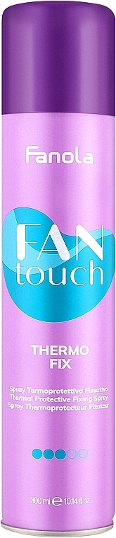 Fanola Thermo Fix Thermal Protective Fixing Spray je tepelně ochranný fixační sprej, který vlasům dodá definici bez zbytečného zatížení. Na vlasech vytvoří ochrannou vrstvu, která je chrání před nadměrným poškozením stylingovými nástroji. Vlasům dodá jemnost a lesk. Je vhodný pro všechny typy vlasů.
