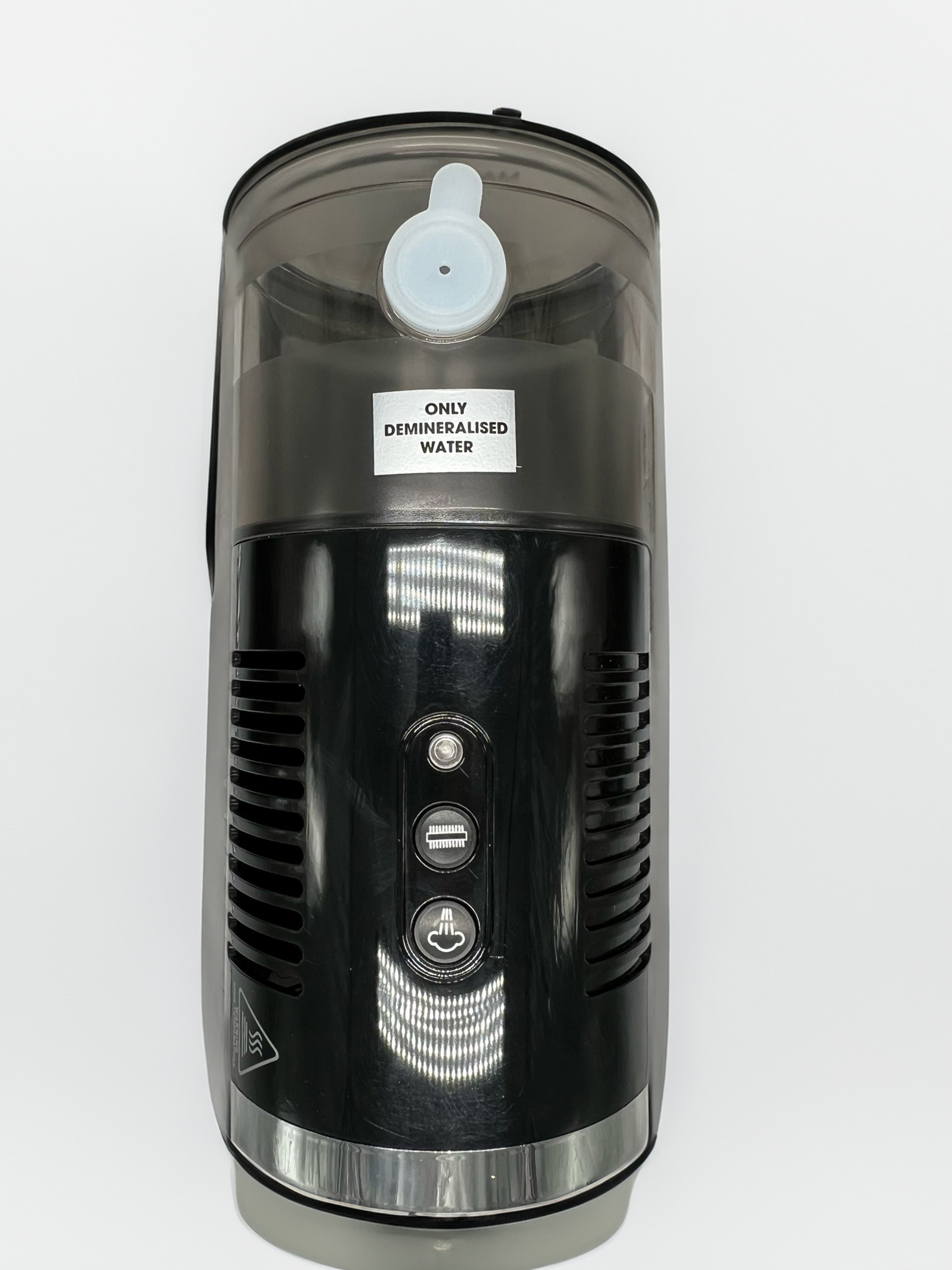 Dezinfekční komora v horní části: aktivace páry zahajuje dezinfekci kartáče vloženého na příslušné podpory. Teplota horké páry dosahuje přibližně 90 °C