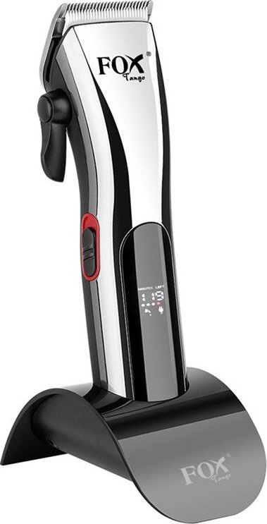 Profesionální ergonomický strojek na vlas Fox Tango s odnímatelným nerezovým břitem (0,8 mm, 1,1 mm, 1,4 mm, 1,7 mm, 2 mm) a akumulátorovým provozem. Strojek je vybaven LCD displejem, který indikuje stav nabití a nutnost olejování čepele. Uvnitř strojku naleznete lithiovou baterii, která poskytuje až 120 minut bezdrátového provozu. Doba nabíjení je 90 minut.