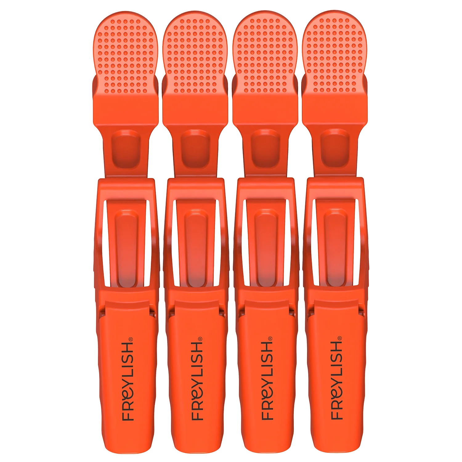 Freylish Hair Clips jsou praktické a odolné klipsy do vlasů, které nesmí chybět v žádné kadeřnické výbavě ani při domácím stylingu. Jsou vyrobeny z kvalitního pevného plastu, který zaručuje dlouhou životnost a spolehlivé používání. Díky speciálnímu designu drží vlasy pevně, ale zároveň šetrně, takže nedochází k jejich poškození.