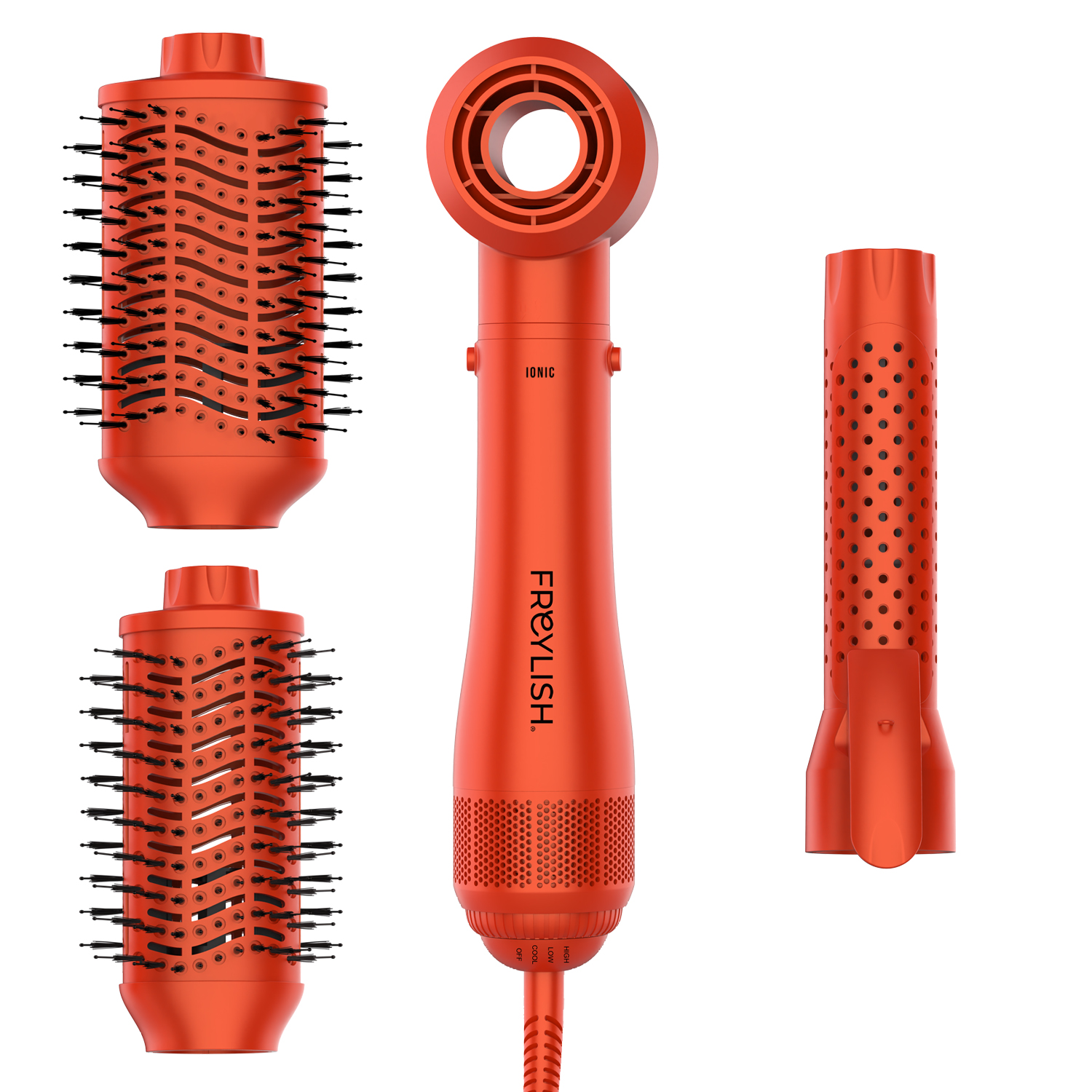 Značka Freylish představuje multifunkční horkovzdušný ionizační kartáč 4v1 Ionic Brush, který kombinuje sušič vlasů, kulmu a dva stylingové kartáče v jednom praktickém zařízení.