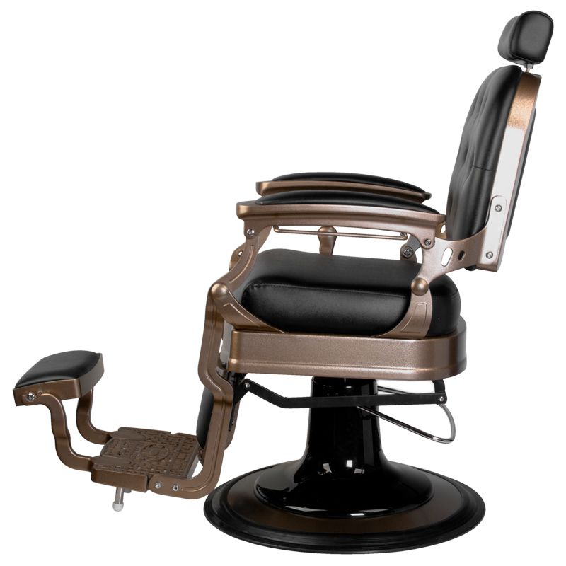 Gabbiano Barbers křeslo Ernesto černé. Pokud váš salon nabízí péči o vousy, můžeme Vám nabídnout dokonalý kus nábytku pro Váš barber shop. Nabízené křeslo je v klasické ale navždy atraktivním designu. Křeslo je velmi pohodlné s širokým rozsahem nastavení, a proto zajistí maximální pohodlí při práci osobě provádějící ošetření a zároveň i vašemu klientovi. Model je vybavený účinným hydraulickým zdvihem, nastavitelným opěradlem a podhlavníkem. Křeslo disponuje také podnožníkem. Jedná se o krásné old křeslo a je ideálním tipem do barber salonu.