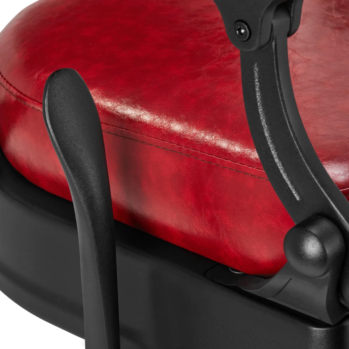 Pevná konstrukce základny zajišťuje stabilitu a vysoký komfort používání. Výplň sedáku z odolné pěny odolné proti deformaci a čalounění z na dotek příjemné syntetické kůže s lesklou povrchovou úpravou zajišťují odolnost nábytku a jeho pohodlné používání po dlouhou dobu. Díky nim je zařízení také odolné proti vlhkosti a snadno se čistí. Potah s prošíváním a ozdobnými knoflíky mu dodává jedinečný charakter. Křeslo s výrazným vintage designem dokonale zapadá do atmosféry holičství a podtrhuje jejich jedinečnou atmosféru.