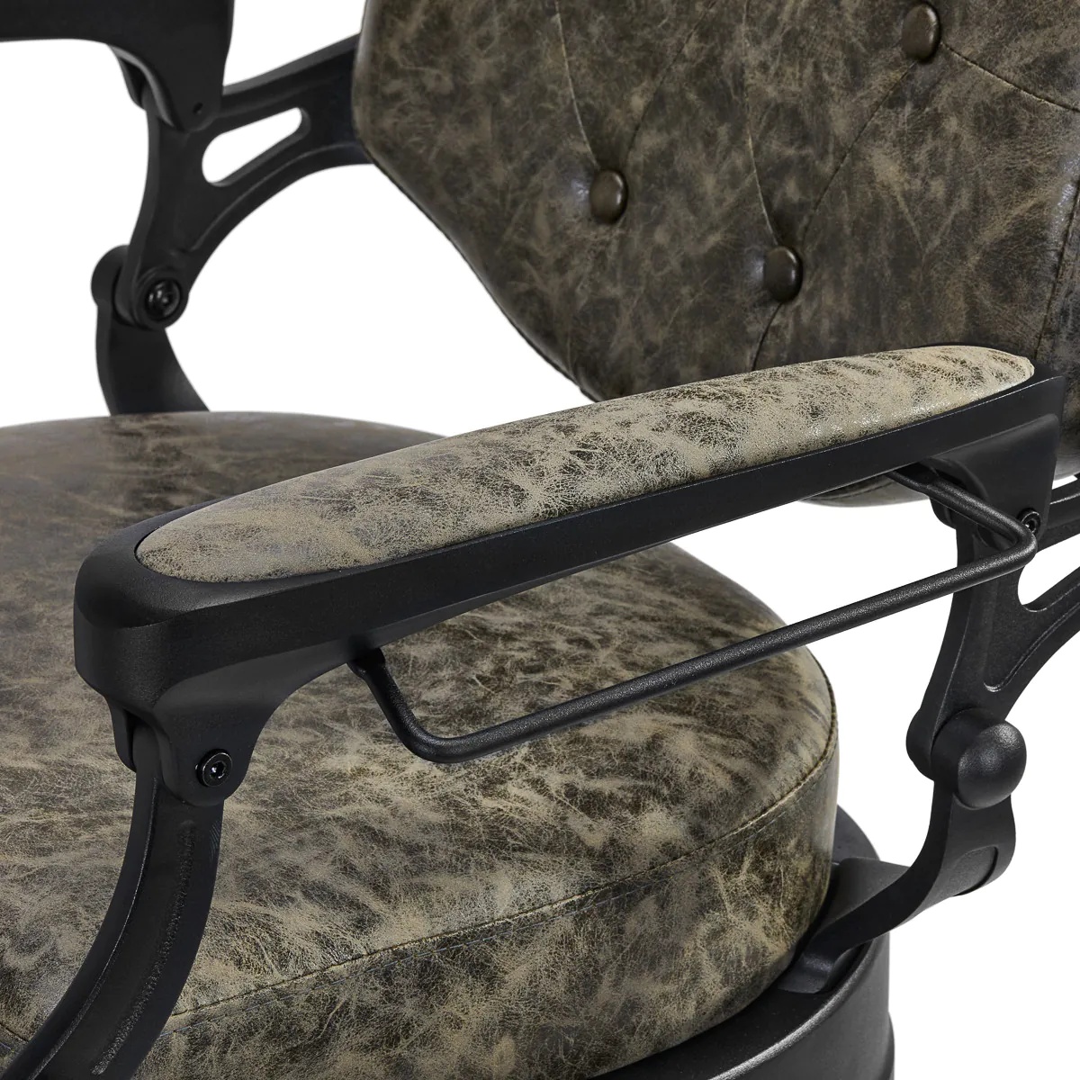 Pevná konstrukce základny zajišťuje stabilitu a vysoký komfort používání. Výplň sedáku z odolné pěny odolné proti deformaci a čalounění z na dotek příjemné syntetické kůže s lesklou povrchovou úpravou zajišťují odolnost nábytku a jeho pohodlné používání po dlouhou dobu. Díky nim je zařízení také odolné proti vlhkosti a snadno se čistí. Potah s prošíváním a ozdobnými knoflíky mu dodává jedinečný charakter. Křeslo s výrazným vintage designem dokonale zapadá do atmosféry holičství a podtrhuje jejich jedinečnou atmosféru.