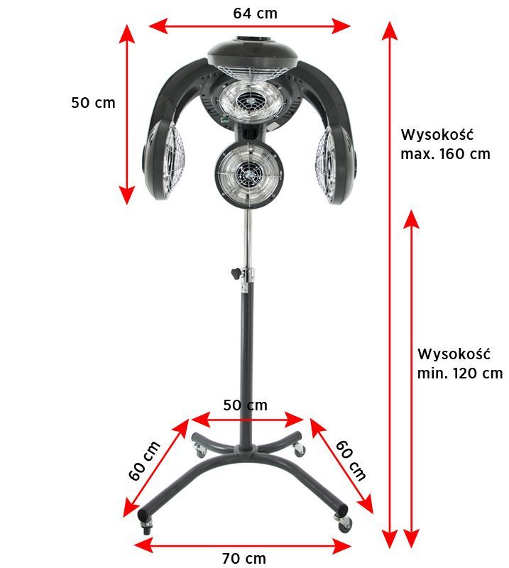 Infrazon pro kadeřnický salon s 5 žhavícími hlavami a 5. ventilátory a navíc s funkcí ozonu. Má elektronický panel pro snadné nastavení parametrů. Je umístěn na stativu s kolečky, jehož výška je nastavitelná. S tímto designovým přístrojem výrazně zkvalitníte a rozšíříte služby ve Vašem salonu. Přístroj dokáže urychlí proces barvení, zesvětlování nebo trvalé. Je perfektním pomocníkem při regeneracích vlasů, nebo při dnes velmi oblíbeném čištění vlasů.