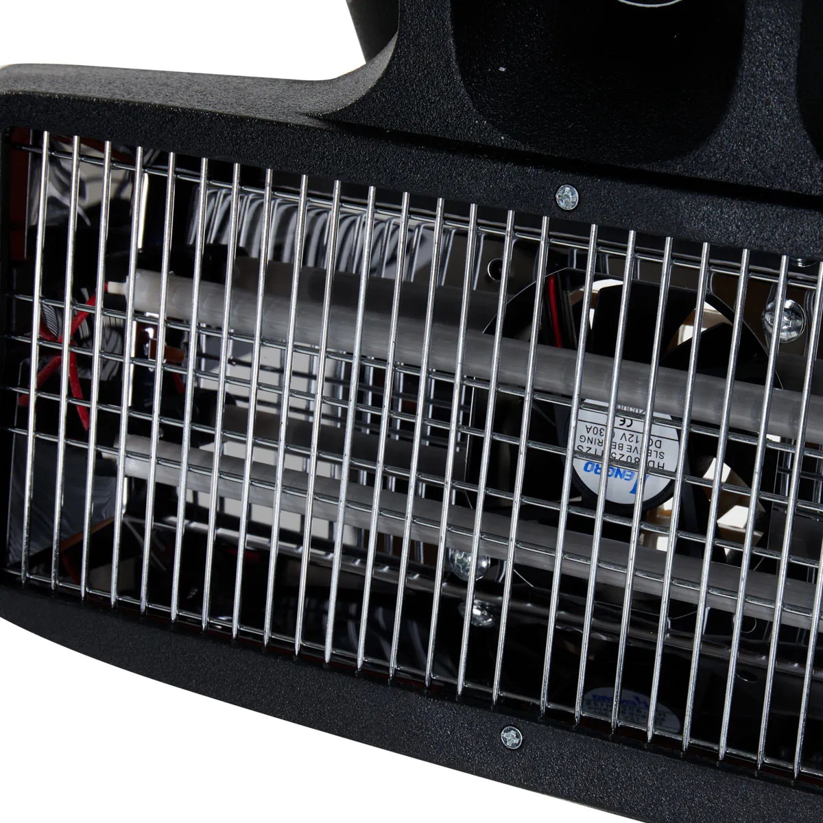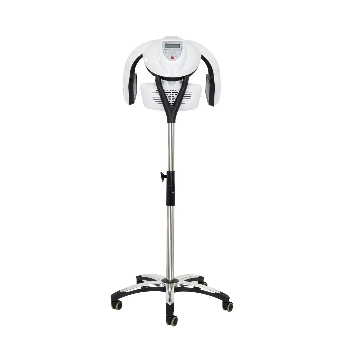 Infrazon pro kadeřnický salon s pěti nahřívacími hlavami. Má elektronický panel pro snadné nastavení parametrů s přednastavenými programy. Je umístěn na stativu, díky čemuž je jednoduché jej přemístit v salonu. S tímto designovým přístrojem výrazně zkvalitníte a rozšíříte služby ve Vašem salonu. Přístroj dokáže urychlit proces barvení, zesvětlování nebo trvalé. Je perfektním pomocníkem při regeneracích vlasů, nebo při dnes velmi oblíbeném čištění vlasů.