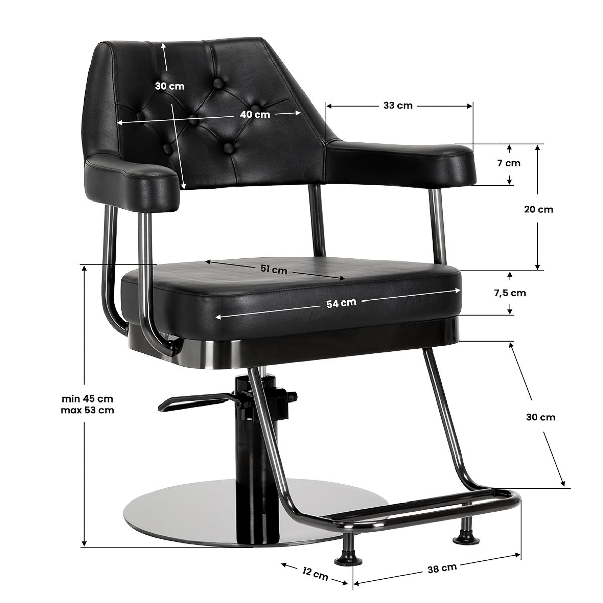 Kadeřnické křeslo Gabbiano Granada vybavené hydraulickým zdvihem je praktickým kusem nábytku , který se stane ozdobou kadeřnického salonu . Klasické barvy, zajímavý design a dekorativní prvky v odstínech černé mu dodávají elegantní vzhled. Vysoká funkčnost zajistí pohodlí jak kadeřníkům, tak jejich uživatelům.