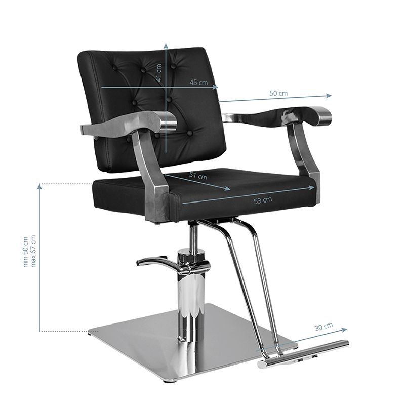 Stylová kadeřnická židle nebo křeslo, záleží na Vás. Jedná se ovšem o dokonale zpracovaný kus nábytku a vyrobený z vysoce kvalitních materiálů, uspokojí vkus i těch nejnáročnějších zákazníků. Ideální jak pro malé salony, tak pro prostorné, luxusní interiéry. Pohodlné, měkké sedadlo a opěrka nohou poskytují klientovi mimořádné pohodlí, a to i během několika hodin u kadeřníka. Hydraulická báze zajistí pohodlný zdvih klienta. Křeslo je opatřenou podnožníkem, bez nutnosti montáže.