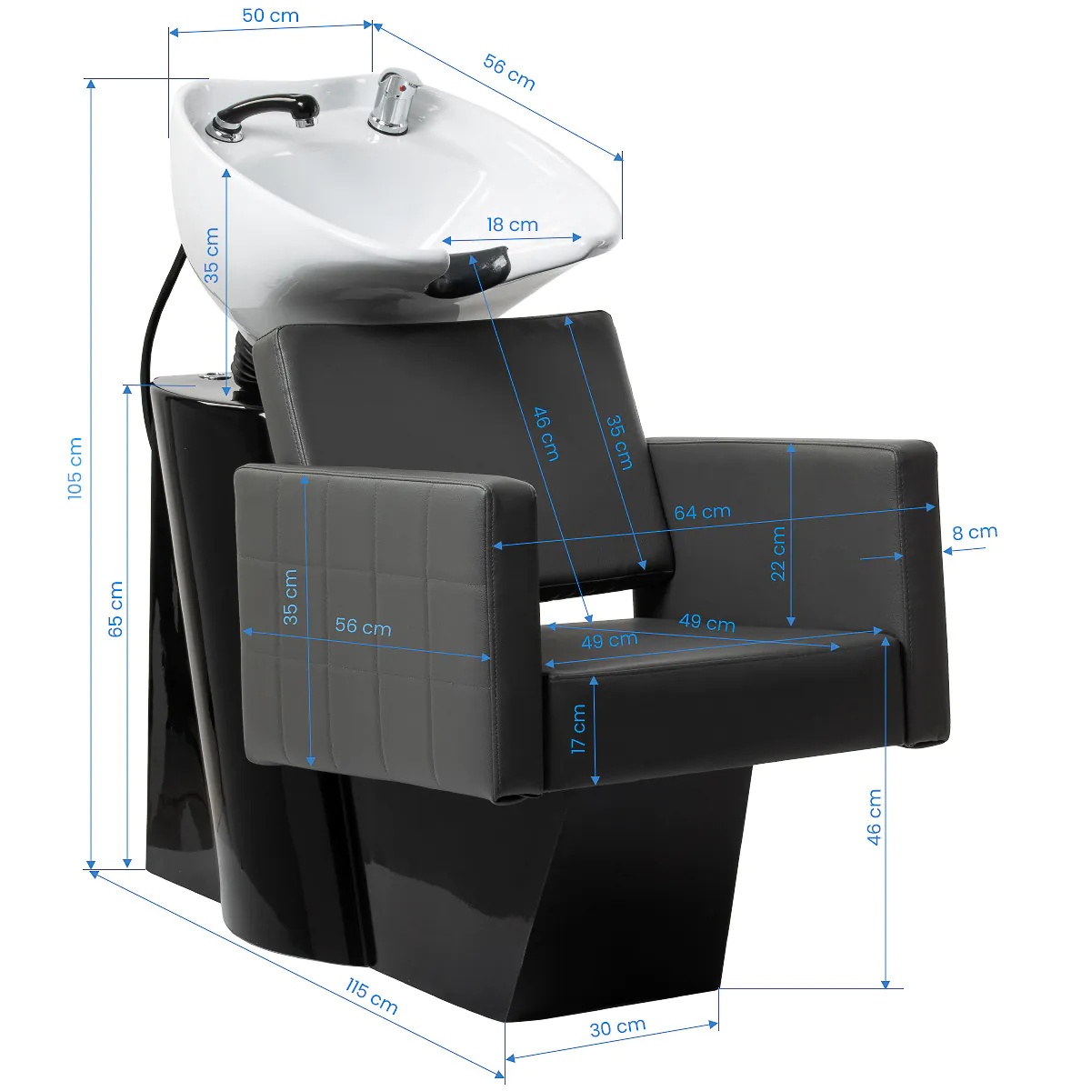 Moderní mycí box Gabbianno, poskytující spojení exkluzivního designu a funkčnosti. Pohodlné a stabilní sedadlo a náklon mísy umožňuje zákazníkovi zaujmout pohodlnou polohu během úkonů. Čalounění sedadel vyrobeno z vysoce kvalitní eko kůže. Mísa také vybavena silikonovou podložkou - umožňuje pohodlné umístění hlavy. Umyvadlo je osazeno sprchou, baterií a odpadem. V nabídce naleznete i křesla Ankara do série.