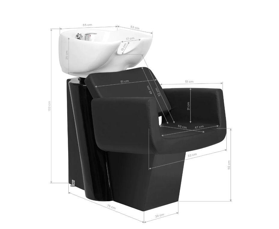 Kadeřnický mycí box Helsinky je originální kadeřnický kus nábytku, který v jiném kadeřnickém salonu nenajdete. Jedná se o kus nábytku vyrobený s velkým řemeslným zpracováním a smyslem pro detail. Moderní design v kombinaci s pohodlím. Mycí box perfektně zapadne do moderních interiérů kadeřnického salonu. Mycí mísa v bílé barvě, s možností nastavení jejího sklonu je osazena baterií, sprchou a odpadem.