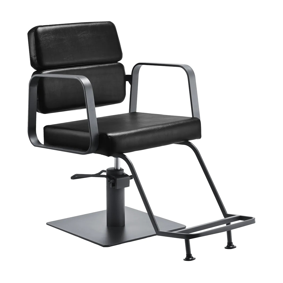 Plně otočný mechanismus, kterým je židle vybavena, zefektivňuje a zpříjemňuje práci kadeřníka. Pevná plochá základna čtvercového tvaru zaručuje stabilitu při používání. Matný, hladký povrch dodává křeslu elegantní vzhled a díky němu se toto křeslo snadno udržuje v čistotě. Pohodlné sedadlo s pěnovou výplní zajišťuje vysokou úroveň komfortu i při dlouhém používání. Geometrické kovové područky umožňují správnou polohu ramen klienta a znatelně tak usnadňují precizní ošetření, včetně stříhání vlasů. Stylová opěrka nohou určená pro tento model poskytuje stabilní oporu pro nohy uživatele.