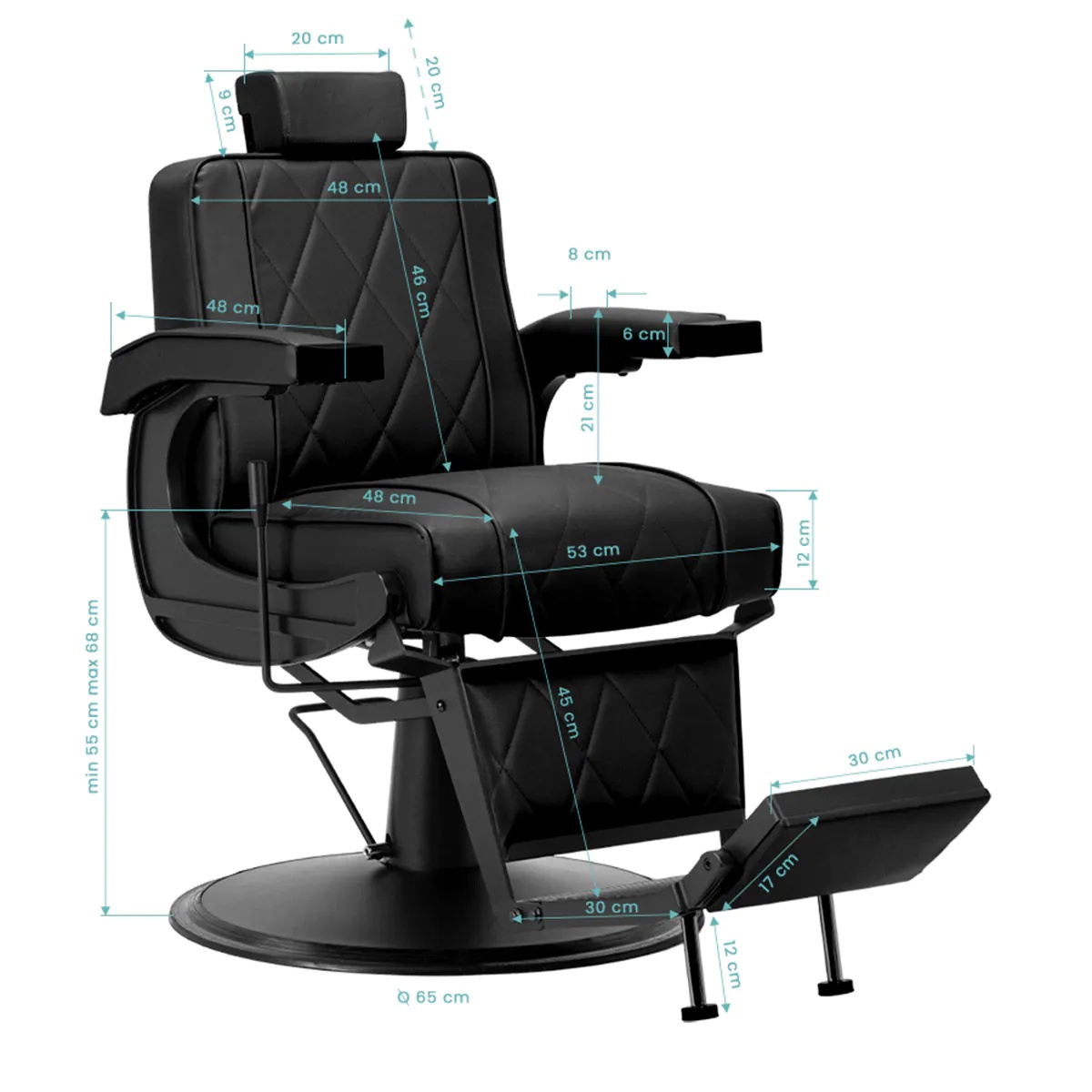 Jedná se o moderní, dokonale zpracovaný kus nábytku, který zákazníkovi, který navštíví Váš barber salon dopřeje maximální pocit pohodlí při prováděných ošetřeních. Křeslo má kromě seřízení nahoru-dolů sklopné opěradlo, polohovatelnou podnožku a opěrku hlavy. I přes malé rozměry je možné klienta umístit do pohodlné, polohovatelné polohy. Pohodlné sedadlo je potaženo kvalitní ekokůží.