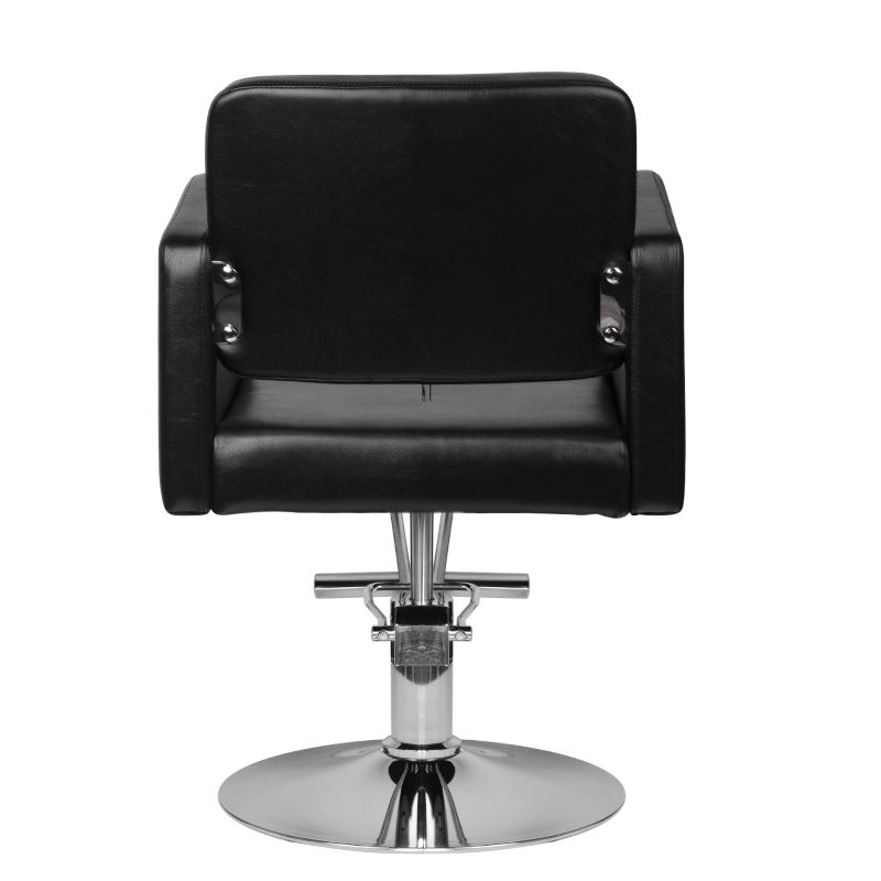 Moderní kadeřnické křeslo HAIR SYSTEM. Příjemné a velmi pohodlné. Pevná chromovaná základna zaručuje stabilitu křesla. Čalounění je vyrobeno z kvalitní černé ekologické kůže, takže se snadno udržuje v čistotě. Hydraulika umožňuje nastavení výšky, pohodlné sezení zajišťuje také podnožka pod nohy.