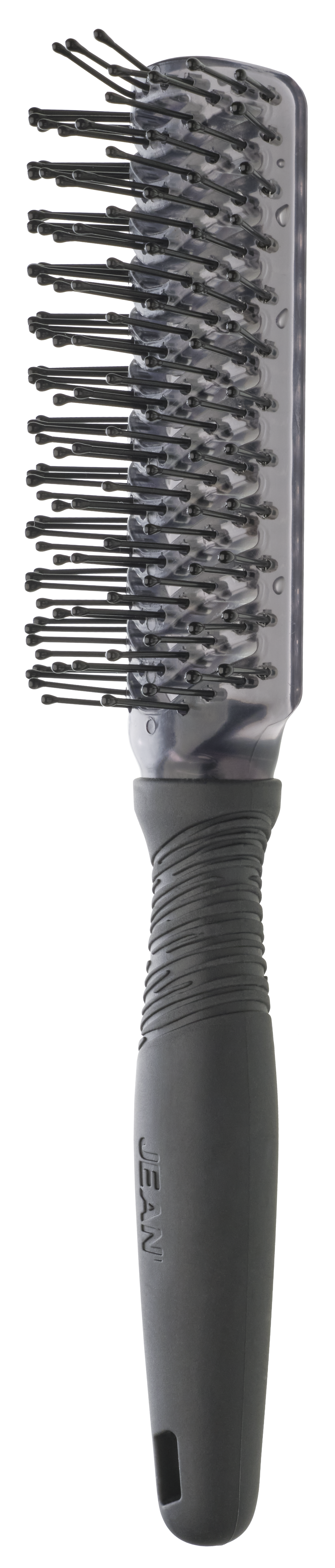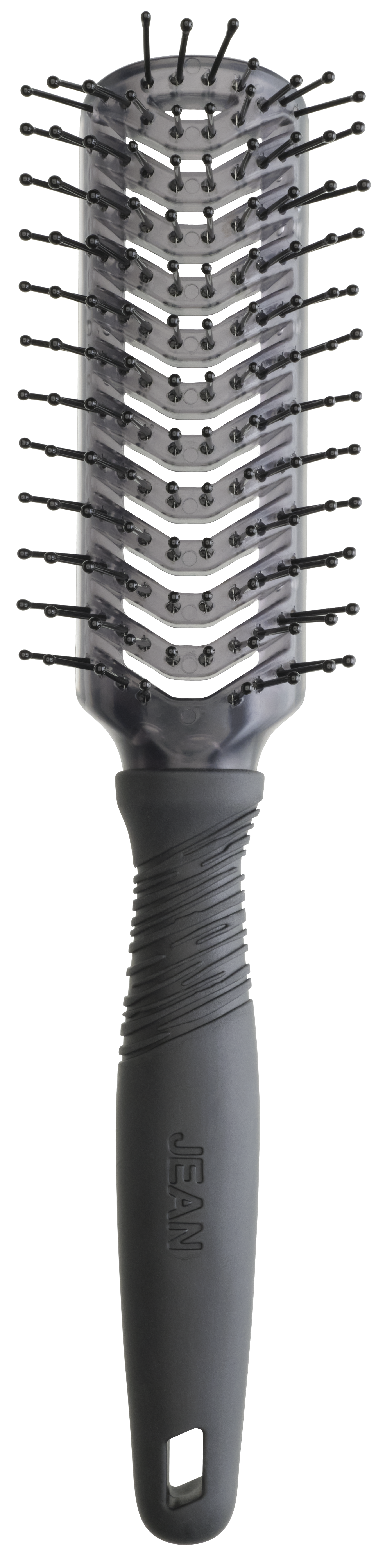 Jean OG The Vented Brush je stylingový kartáč s nylonovými antistatickými štětinami, které jsou na koncích zakončeny kuličkou. Díky tomu je česání jemné a předchází se poškození vlasové pokožky. Délka štětin je 20 mm, což umožňuje snadné pronikání kartáče do vlasů a jejich důkladné rozčesání.