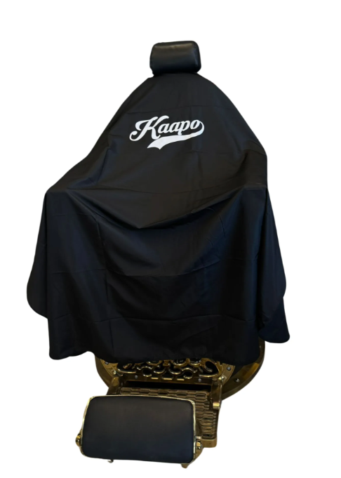 Extra dlouhá barber pláštěnka o rozměrech 180 x 140 cm. Je vyrobena z odolného 100% polyesteru. Má klasické zapínání u krku a je v černém provedení. Polyester je odolný vůči chemikáliím a vodě. Je rychleschnoucí a snadno omyvatelný.