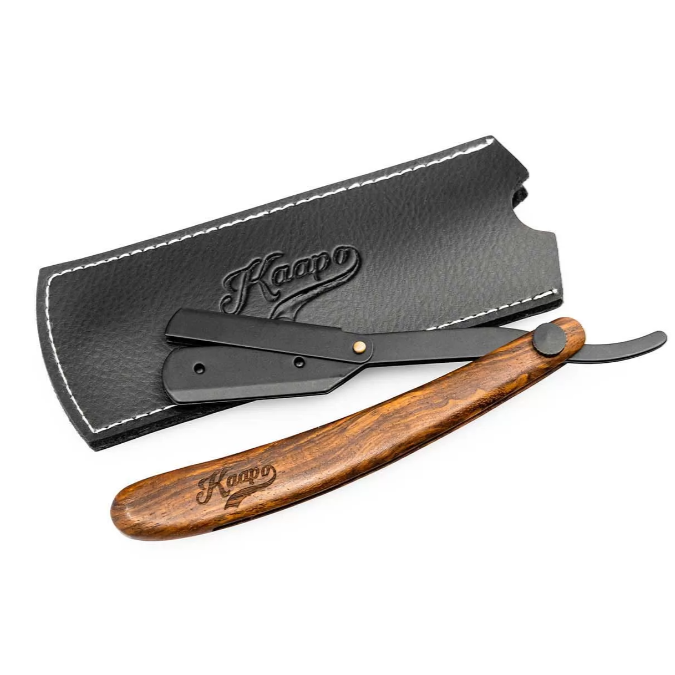 3. Poté vložte půlenou žiletku do Shavetty Kaapo a s holením vousů ve směru jejich růstu, což minimalizuje riziko podráždění a zarůstání vousů.