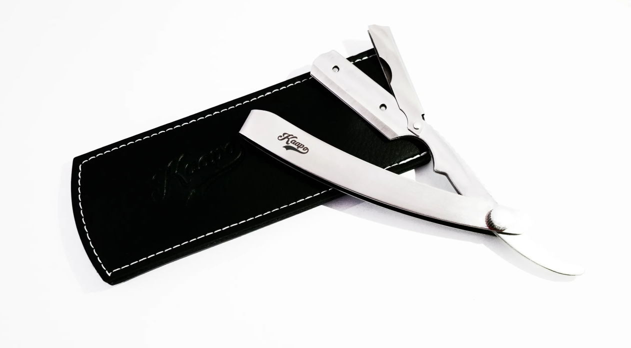 3. Poté vložte půlenou žiletku do Shavetty Kaapo a s holením vousů ve směru jejich růstu, což minimalizuje riziko podráždění a zarůstání vousů.