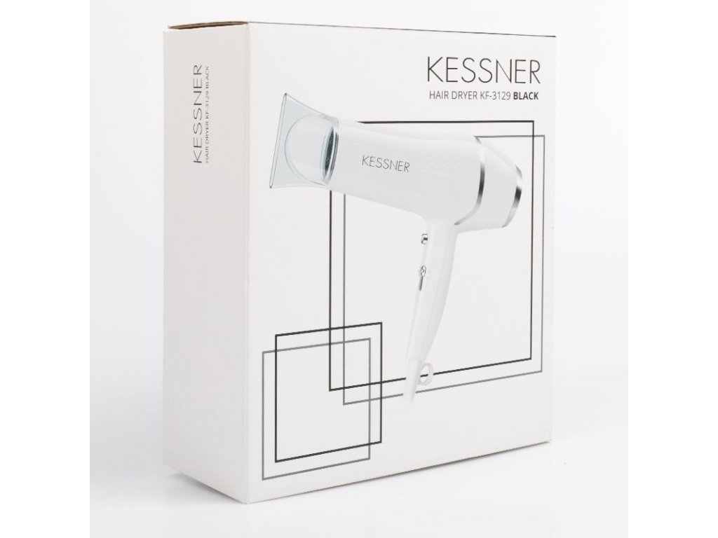 Kessner fén na vlasy s výkonem 2100W v bílé barvě. Tento fén na vlasy zaručuje účinné a bezproblémové sušení vlasů.