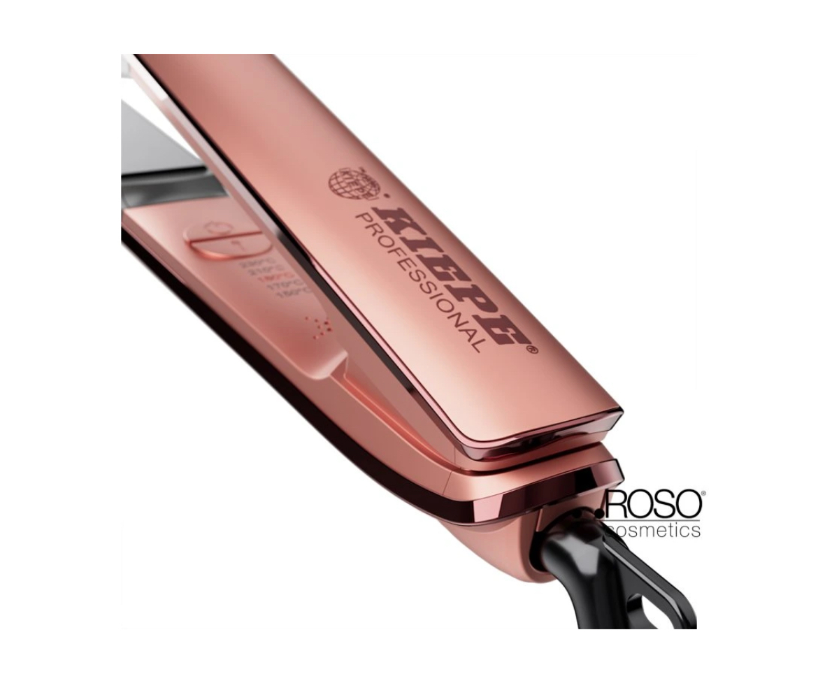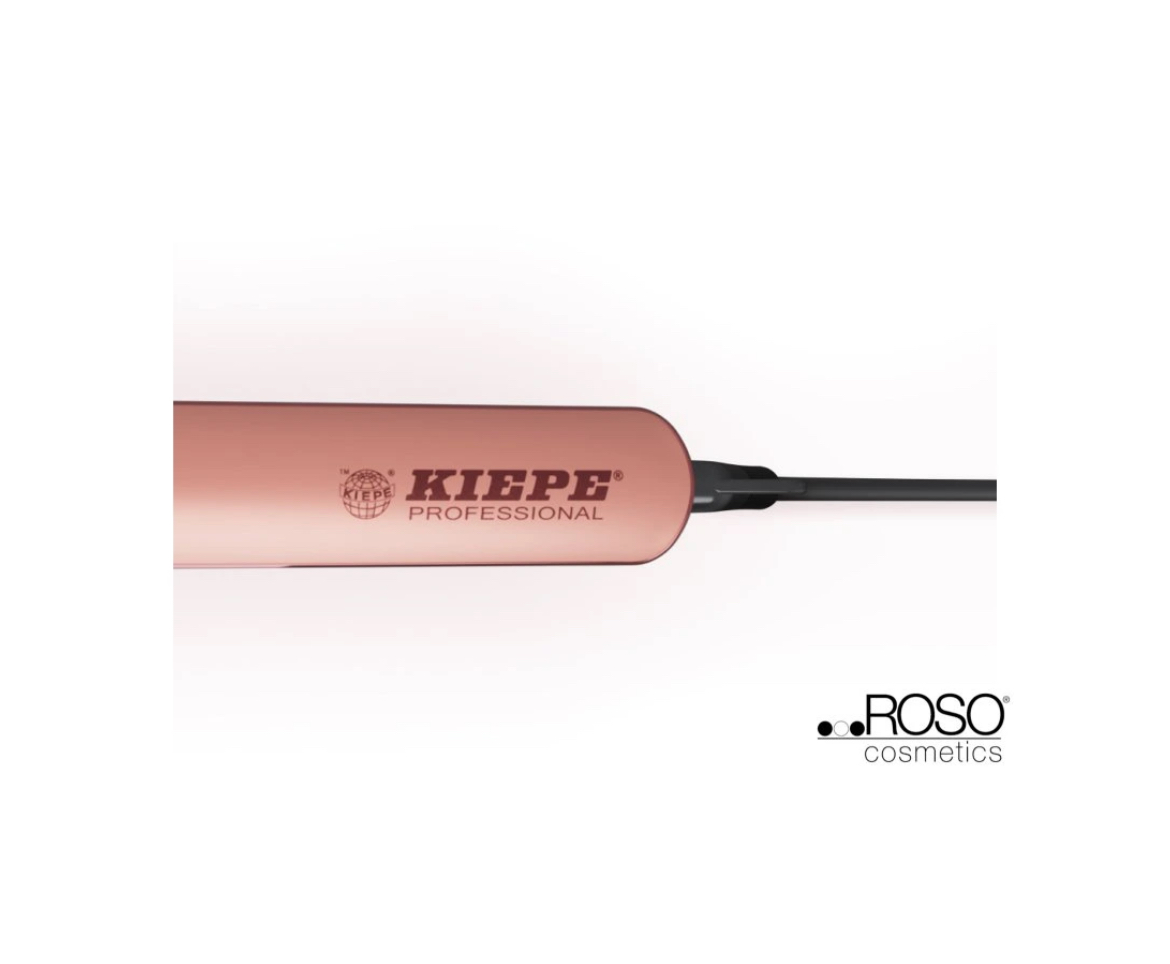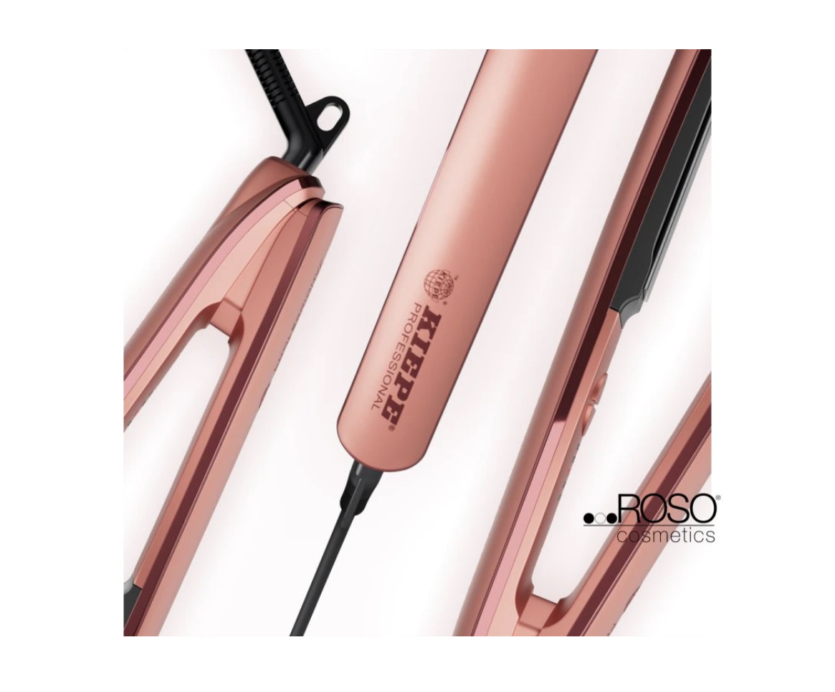 Profesionální žehlička na vlasy od značky Kiepe Patin Rose Gold je díky technologii titanového klouzavého povrchu Flex-Q a flexibilním nastavením teploty šetrná k vlasům a zároveň efektivní při stylingu. Povrch Flex-Q umožňuje rovnoměrné narovnání a antistatický efekt a minimalizaci krepatění vlasů.