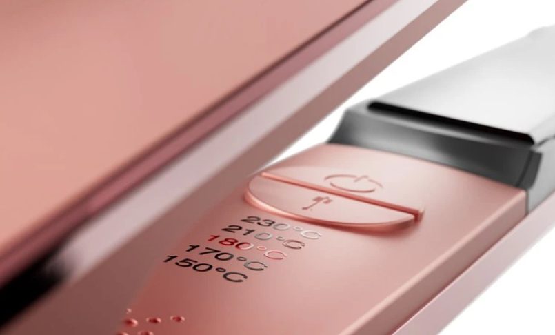 Žehlička má 5 nastavitelných teplotních stupňů (150 °C, 170 °C, 190 °C, 210 °C, 230 °C) a je vhodná pro všechny typy vlasů.