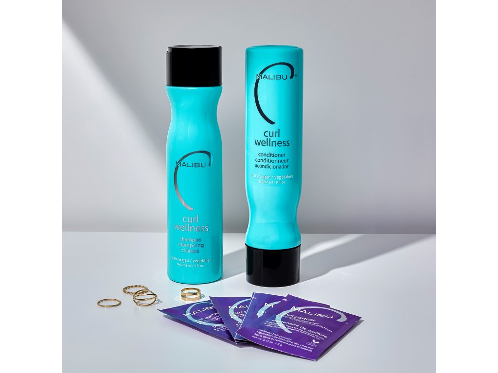 100% veganský šampon Malibu C Curl Wellness Shampoo jemně odstraňuje z vlnitých a kudrnatých vlasů povrchové minerály a nežádoucí usazeniny. Unikátní receptura v nich poté uzamyká vlhkost a vlasy jsou tak hydratované a snadno se rozčesávají. Zásluhou složení bez sulfátů, parabenů, chloridu sodného a umělé parfemace je šampon k vlasům velmi šetrný a nezatěžuje je. Vlny a kudrliny jsou krásně pružné, nekrepaté a mají oslnivý lesk. Šampon nebyl testován na zvířatech.