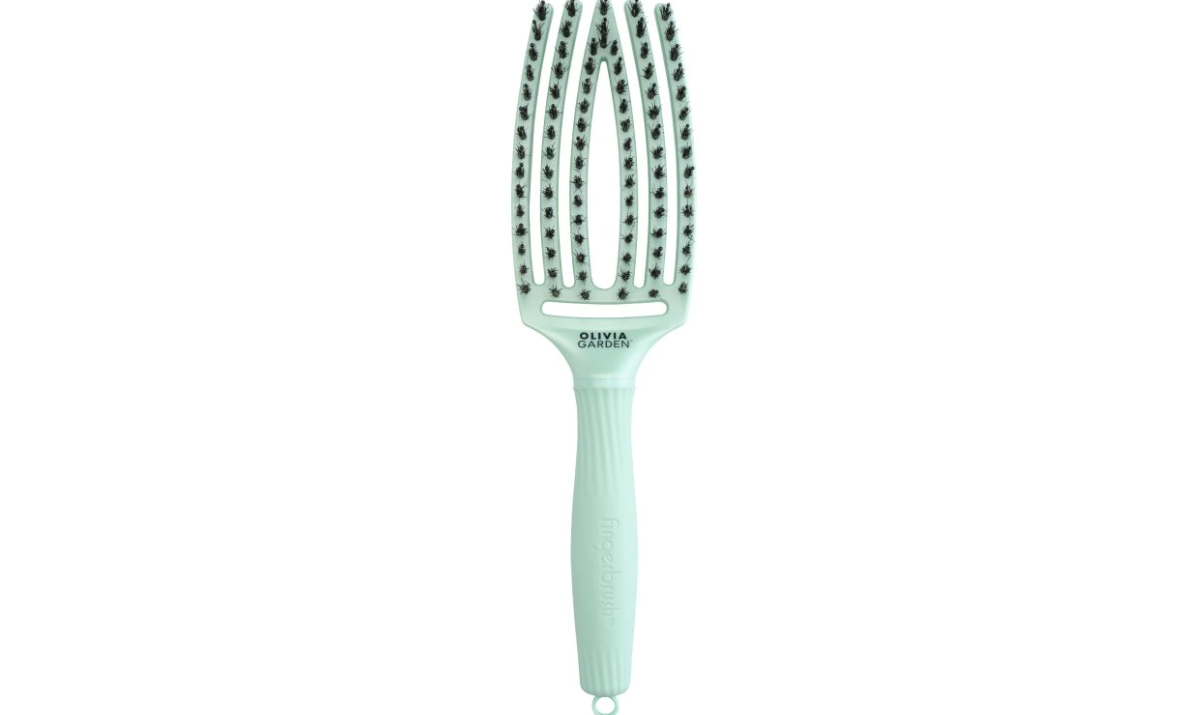 Kartáč na vlasy Olivia Garden Fingerbrush Arctic Teal. Díky velkým vzduchovým otvorům v těle poskytuje lepší průtok vzduchu a urychluje schnutí vlasů. Výsledkem je efektivnější styling. Kombinace 100% kančích a nylonových štětin, které mají antistatickou vlastnost. V ergonomicky tvarované rukojeti je vsazen výsuvný hrot na vypichování pramenů.