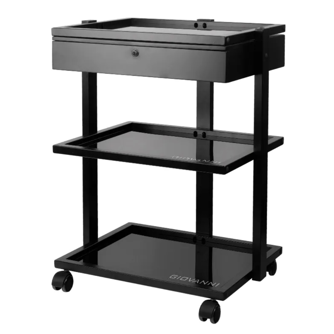 Pro Ink 1040A tetovací asistent v černé barvě s odolnou ocelovou konstrukcí.Dřevěná zásuvka vám umožní uchovávat vybavení a příslušenství v blízké vzdálenosti od tetovacího křesla. Skleněná deska vám umožní udržovat věci a prostředí čisté při práci s pigmentem. Obsahuje i držák na lampu.