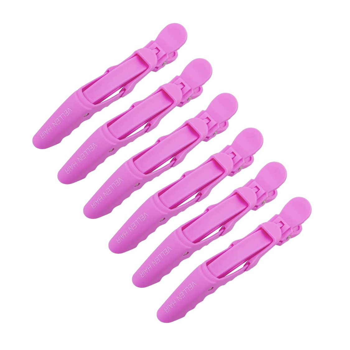 Balení 6 ks vysoce kvalitních krokodýlových spon do vlasů ze speciálního pogumovaného protiskluzového materiálu v růžové barvě.