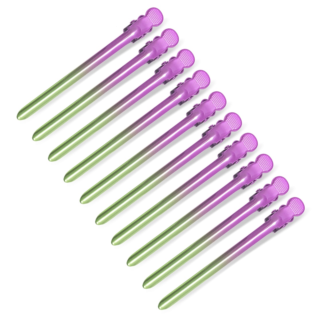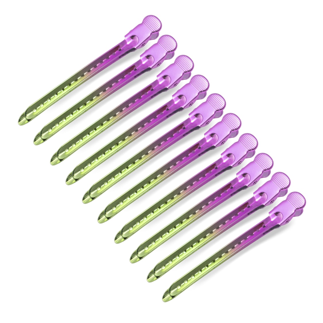 Prémiové pinety do vlasů Vellen Hair jsou vyrobeny z poniklovaného kovu a jsou ideální pro držení fólií během aplikace barvení vlasů. Klipy jsou pevnější a odolnější oproti běžným plastovým pinetám. Balení obsahuje 10 ks metalových pinet v zelenofialové kombinaci barev.