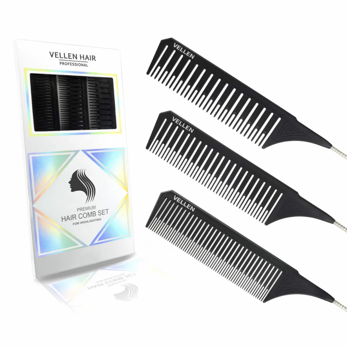 Patentovaný Vellen Hair Ultimate Highlighting Comb snižuje váš pracovní čas až o 1,5 hodiny! Dodává se ve 3 velikostech s přizpůsobeným rozestupem zubů a oddělením linií. Extra dlouhý hrot z nerezové oceli, lehký design a pohodlná rukojeť, která se nesmeká při držení. Statické plastové materiály ULTEM pomáhají předcházet vzniku statické energie a krepatění. Navržen s postupně klesajícím sklonem, hřeben usnadňuje rovnoměrné napnutí vlasů a pomáhá vytvářet dokonalé oddělení vlasových partií.