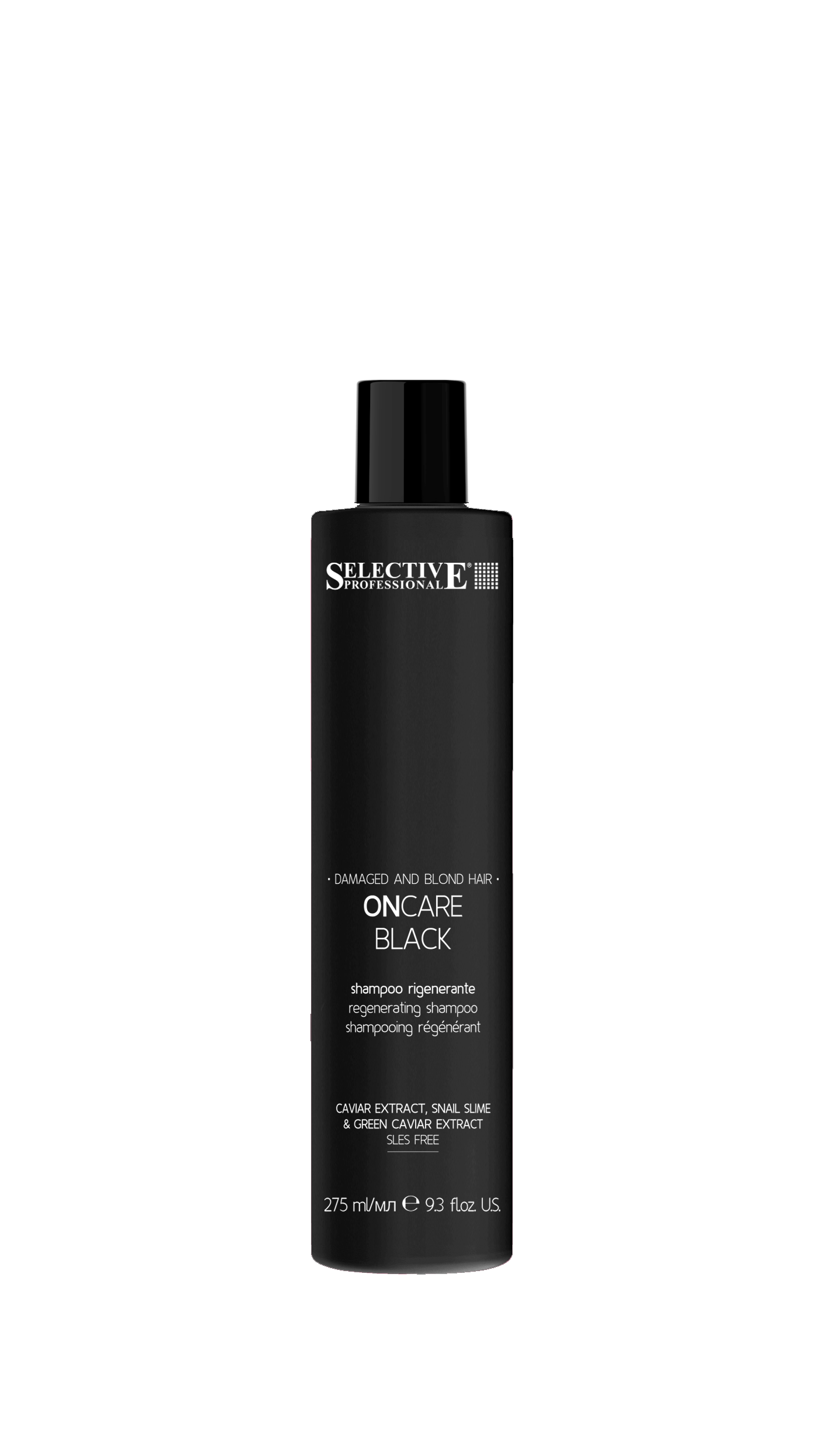 Značka Selective Professional představuje regenerační šampon s kaviárem a šnečím extraktem pro poškozené, tmavé i blond vlasy. Díky složení založenému na přírodních účinných látkách vlasy hloubkově regeneruje, navrací jim vitalitu, lesk a hebkost. Výtažek z černého kaviáru s vysoce antioxidačními, vyživujícími a hydratačními vlastnostmi. Výtažek z hlemýždího slizu obnovuje strukturu vlasů a dodává jim pevnost a lesk. Díky obsaženému kolagenu a kyselině glykolové pomáhá obnovovat vlasové vlákno poškozené chemickou nebo tepelnou úpravou, zabraňuje vysušování a zlepšuje hebkost vlasů. Šampon čistí s celkovým ohledem na vlasové vlákno a obnovuje jeho fyziologickou hydrolipidickou rovnováhu. Zanechává vlasy regenerované, hedvábné a pružné. Oživuje matné vlasy bez tónu. Chrání před oxidačním namáháním. Očišťuje a detoxikuje pokožku hlavy. Šampon má pižmovou, květinovou sladkou vůni. Nezanechává černý pigment. Prášek z dřevěného uhlí má absorpční a čistící vlastnosti. Pomáhá zbavit pokožku hlavy zbytků produktů, smogu a dalších usazenin. Jeho detoxikační účinky pomáhají udržet vlasy lehké, lesklé a čisté po delší dobu. Výtažek ze zeleného kaviáru je bohatý na polysacharidy a minerály, které udržují vlhkost ve vláknech, udržuje vlasy dlouhodobě hydratované. Vysoká koncentrace omega-3, karotenoidů, vitaminu C a E vlasy hloubkově vyživuje a pomáhá je chránit před oxidačním namáháním a poškozením vlivem prostředí, čímž jim dodává plnost a vyživující účinek.