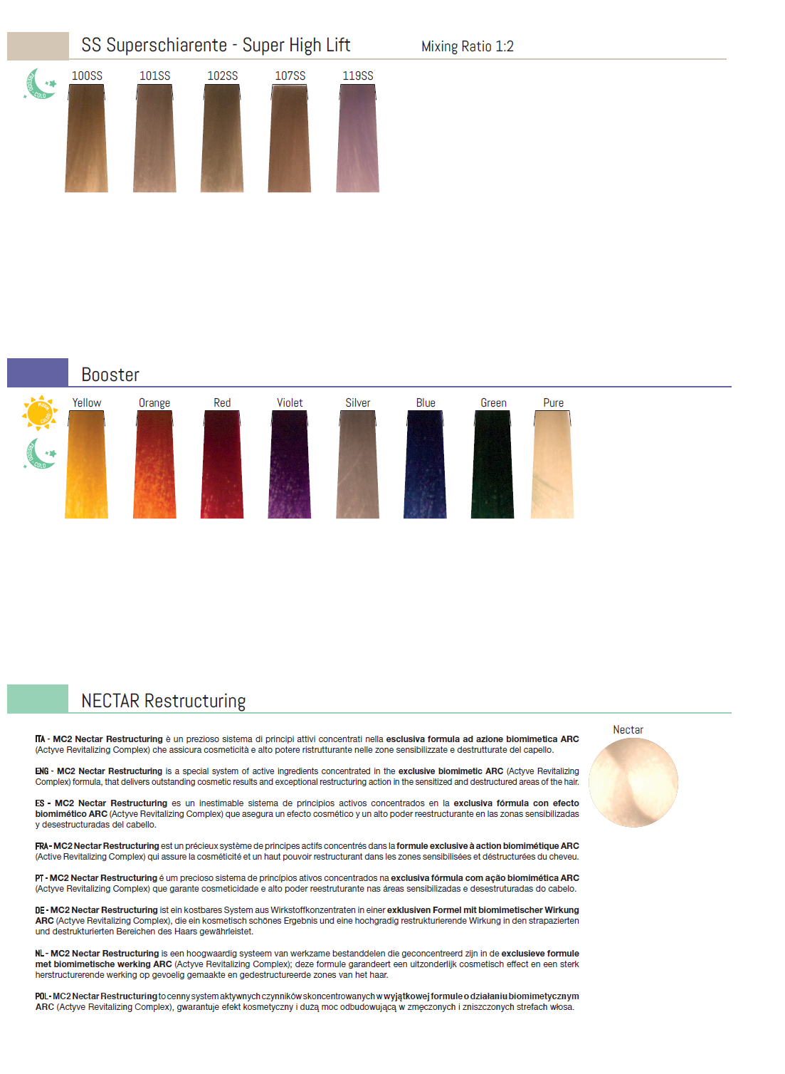 MC2 je systém permanentního a polo permanentního barvení, určený všem ženám, které chtějí své vlasy obarvit a současně jim poskytnout výživu a hloubkovou regeneraci.