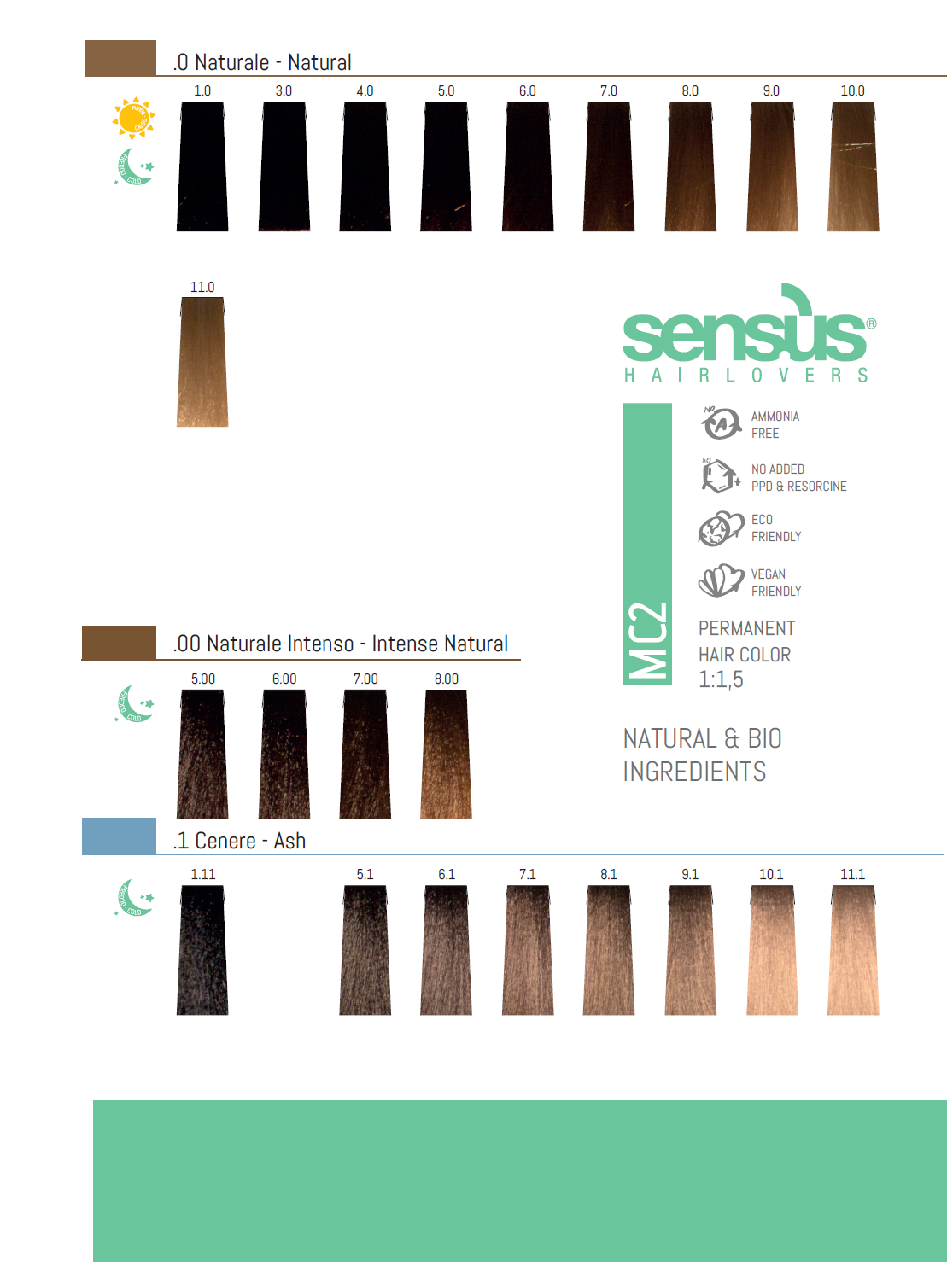 Škála barev značky SENS.US MC2 se nyní skládá ze 94 barevných odstínů, ale vzhledem k tomu, že se tyto krémy mohou snadno vzájemně mísit je možnost barev daleko širší.