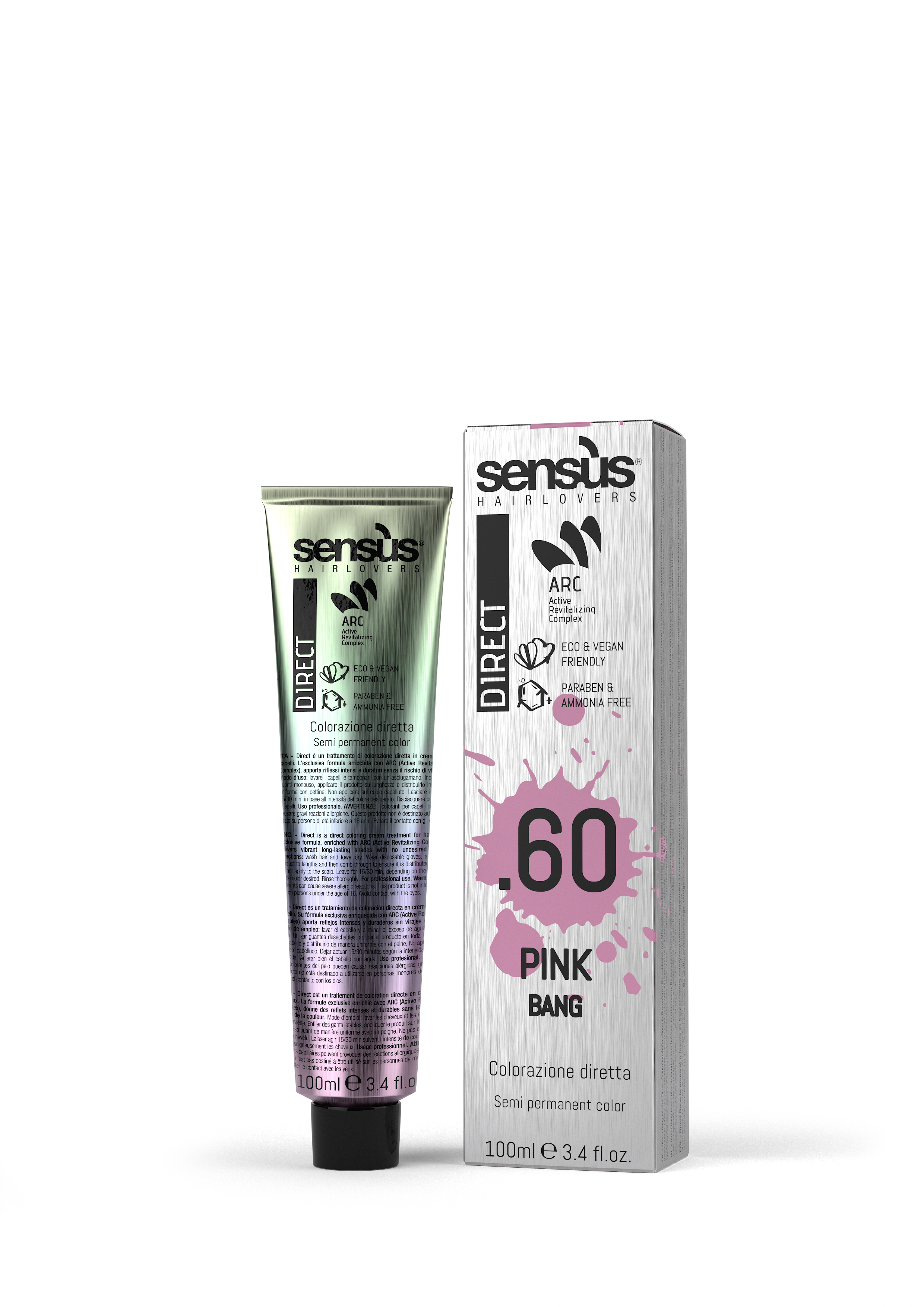 Sensus Direct Bang je přímý barvící pigment na vlasy. Exkluzivní receptura, obohacená o ARC (aktivní revitalizační komplex), poskytuje pestré dlouhotrvající odstíny. Aktivní revitalizační komplex (ARC) je směs biomimetických rostlinných aminokyselin napodobuje činnost keratinové struktury vlasů. Posiluje a omlazuje vlasy. Má regenerační, multifunkční účinek optimalizovaný pro interakci na molekulární úrovni ve vlasech. Obnovuje vlasové vlákno.