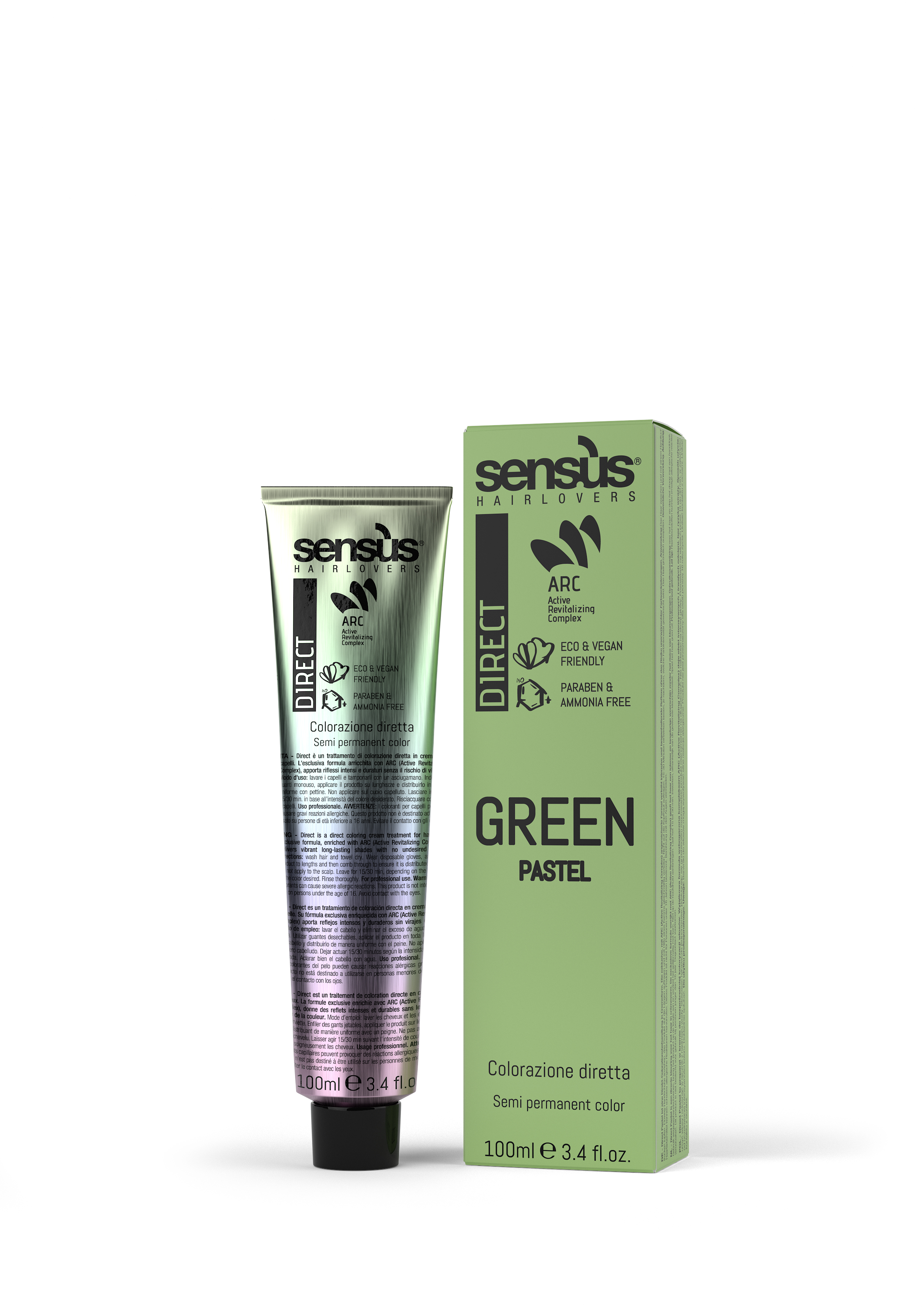 Sensus Direct Pastel je přímý barvící (pastelový) pigment na vlasy. Exkluzivní receptura, obohacená o ARC (aktivní revitalizační komplex), poskytuje jemné odlesky. Aktivní revitalizační komplex (ARC) je směs biomimetických rostlinných aminokyselin, napodobuje činnost keratinové struktury vlasů. Posiluje a omlazuje vlasy. Má regenerační, multifunkční účinek optimalizovaný pro interakci na molekulární úrovni ve vlasech. Obnovuje vlasové vlákno.