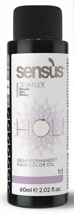 Sens.ùs Holi je jemná demi permanentní oxidační barva bez obsahu amoniaku, pro přirozené, barvené, zesvětlené a odbarvené vlasy. Jeho olejové složky a exkluzivní komplex Deva-Plex chrání vlasové vlákno. V nabídce je 29 odstínů. Obsahuje bambus, papáju, bavlnu a Deva-plex. Bambus stimuluje nový růst vlasů a působí proti jejich stárnutí. Bavlna je bohatá na přírodní a esenciální mastné kyseliny s restrukturalizačními a zvláčňujícími vlastnostmi. Papája je bohatá na vitamíny A, C, E, K, minerální soli a flavonoidy. Ty bojují proti volným radikálům a pomáhají vlasům zůstat silné a elastické. Papája má také výživné a anti-aging vlastnosti. Papain, enzym obsažený v ovoci, vlasy hydratuje a posiluje. Má revitalizační účinek a pomáhá zklidnit podráždění pokožky. Deva-plex je vzácný komplex přírodních ingrediencí se schopností udělat vlasy extrémně hydratované a lesklé.