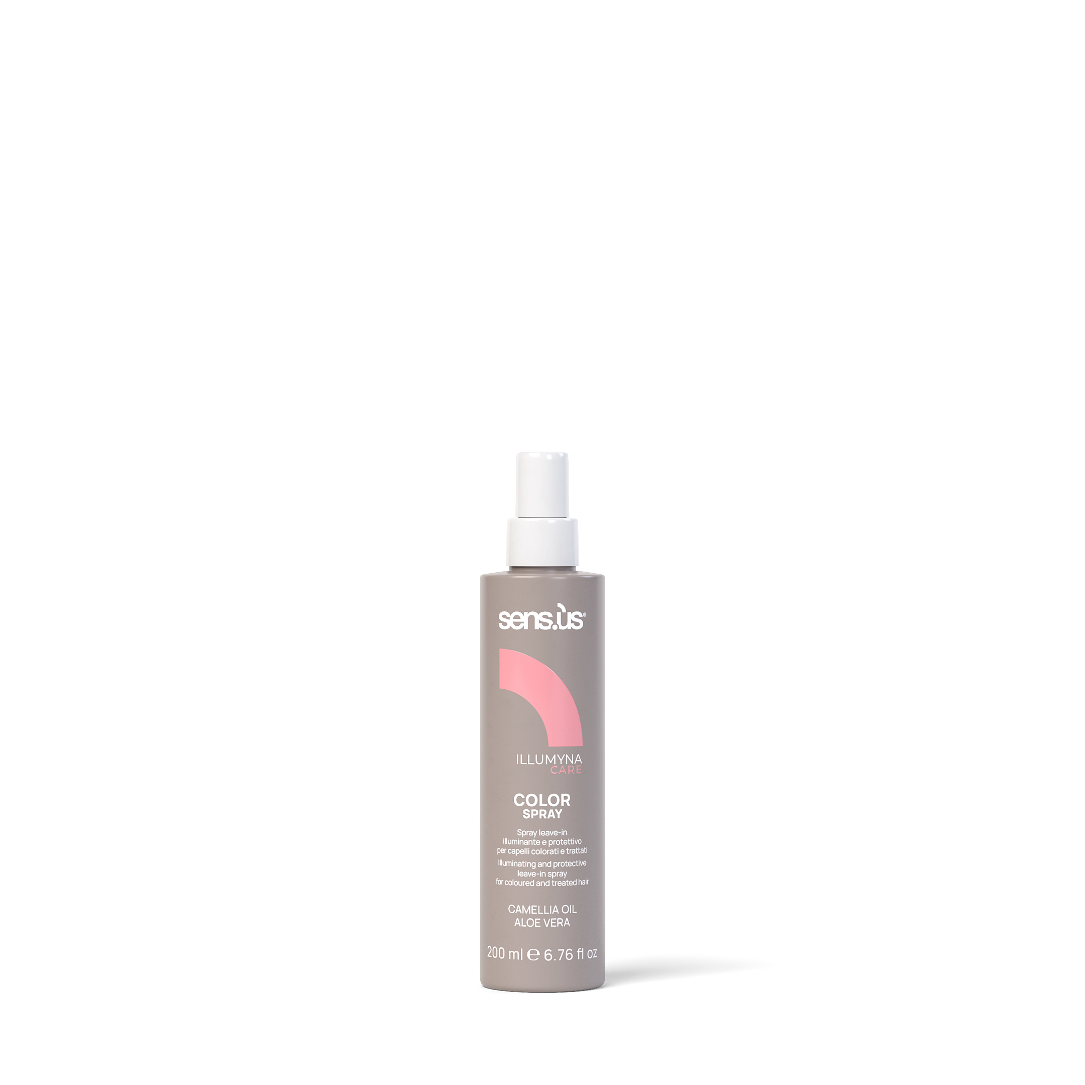 Sensus Illumyna Care Color Spray je rozjasňující a ochranný bezoplachový sprej pro barvené a chemicky ošetřené vlasy. S olejem z kamélie a aloe vera. Zvyšuje lesk a hedvábnost barvených vlasů a zároveň napomáhá uzavřít vlasovou kutikulu. Olej z kamélie je bohatý na vitamíny A a E poskytuje hlubokou hydrataci a udržuje vlasy hedvábně jemné. Jeho antioxidační vlastnosti chrání barvu vlasů před poškozením okolním prostředím a udržují ji zářivou. Se silnými vyživujícími a hydratačními vlastnostmi je aloe vera klíčovou složkou, pokud jde o péči o barvené a chemicky ošetřené vlasy. Bohatý na vitamíny, zvyšuje lesk a pružnost, zatímco jeho zklidňující vlastnosti zmírňují podrážděnou pokožku hlavy.