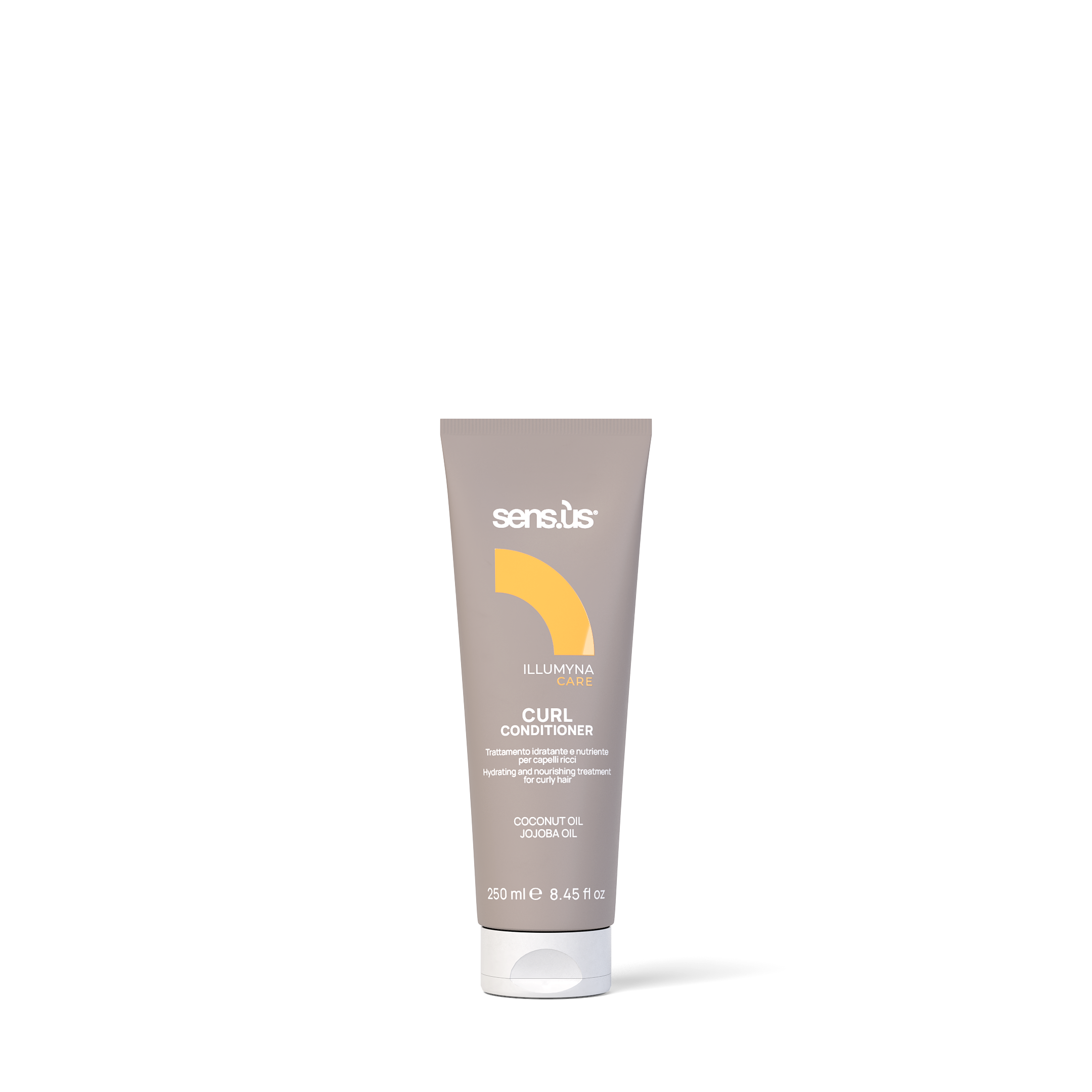 Sensus Illumyna Care Curl Conditioner je hydratační a vyživující kondicionér pro kudrnaté vlasy. S kokosovým olejem, jojobou a medem. Ideální pro péči o vlnité, kudrnaté a krepaté vlasy. Vyživuje a usnadňuje rozčesávání vlasů. Vlasy jsou po použití lehké, elastické a definované. Kokosový olej je skutečný elixír, který se v průmyslu péče o vlasy používá již desítky let. Tento olej získaný z kokosu lisovaného za studena posiluje proteinové vazby ve vlasech. Díky antimikrobiálním vlastnostem také podporuje zdravé vlasy. Kokosový olej vytváří bariéru proti vlhkosti, která udržuje kadeře pružné a definované i ve vlhkém prostředí. Jojobový olej má složení podobné přirozenému kožnímu mazu, který se nachází na vlasech. Tento velmi lehký olej účinně hydratuje a redukuje krepatění kudrnatých vlasů, aniž by je zatěžoval, a zároveň zvyšuje hebkost a lesk. Med díky své schopnosti přitahovat a zadržovat vlhkost, udržuje kudrnaté vlasy jemné a lesklé. Med, nabitý flavonoidy, fenolovými kyselinami a vitamínem C, je považován za silný antioxidant a změkčovadlo schopné dodávat hloubkovou výživu.
