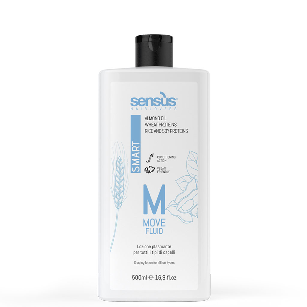 Sensus Smart Move Fluid je objemová trvalá ondulace pro všechny typy vlasů. Její speciální receptura poskytuje objem, pružné a mírné vlny. Díky bílkovinám je tento proces rychlý a šetrný k vlasům. Po použití jsou vlasy hydratované a lesklé. Obsahuje mandlový olej, pšenici a sójové proteiny.