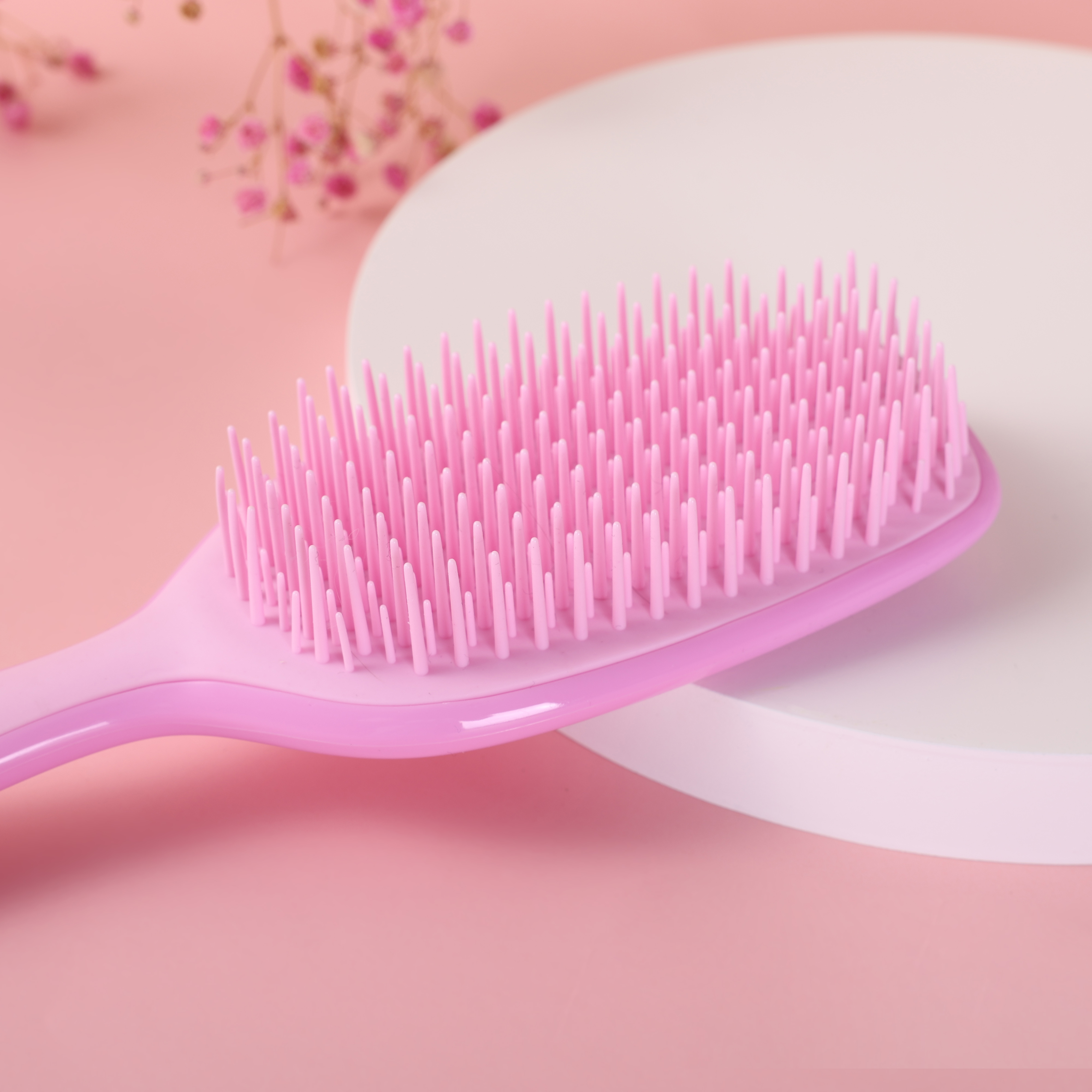 Měkké, elastické štětiny umožňují rychlé a snadné rozčesávání vlasů, aniž by je tahaly nebo lámaly. Jemně oddělují zamotané vlasy a uzly během několika sekund a bezbolestně rozčesávají všechny typy vlasů, ať už suché nebo mokré.