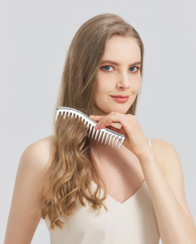 Tento profesionální hřeben se vyznačuje jedinečnými vlastnostmi, které minimalizují poškození vlasů. Ať už češete mokré nebo suché vlasy, velké rozestupy mezi zuby a celková velikost hřebenu účinně zabraňují lámání, takže je ideální pro každodenní použití i složitější styling.